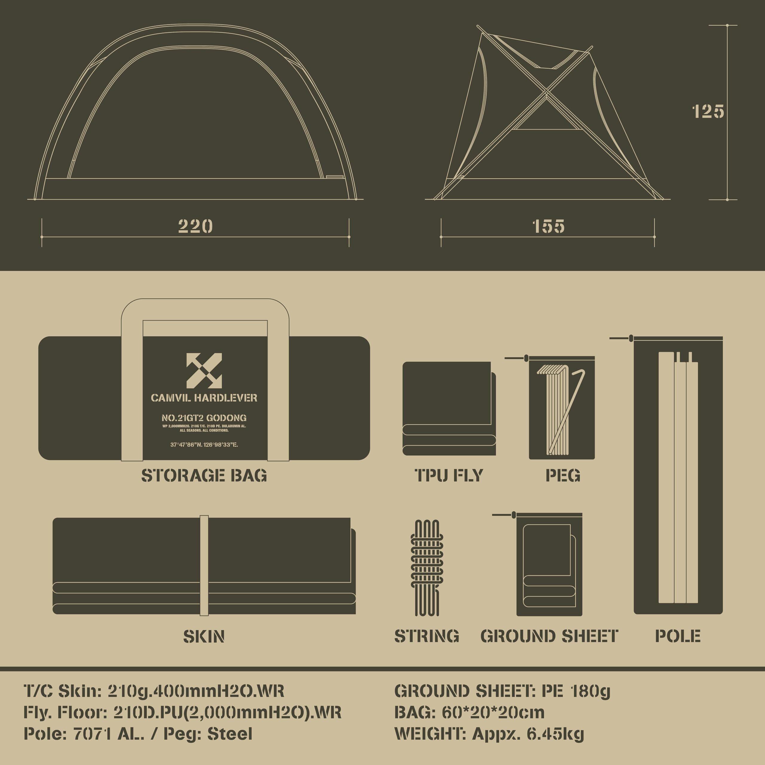 GODONG TCコットンテント 2人用 防水外帳とグランドシート付き 自立式 ポリコットンキャンプテント【TPU天窓】オールシーズン対応 結露なし 防風避難 防災用 設営簡単 ファミリーツーリング