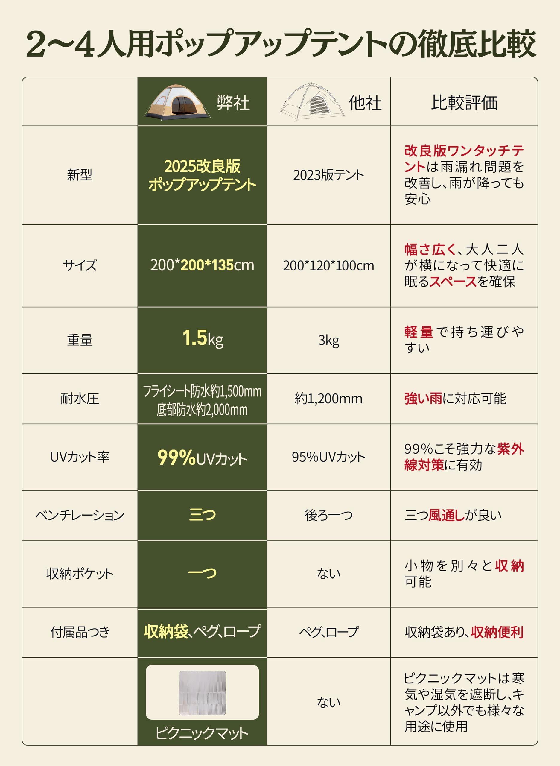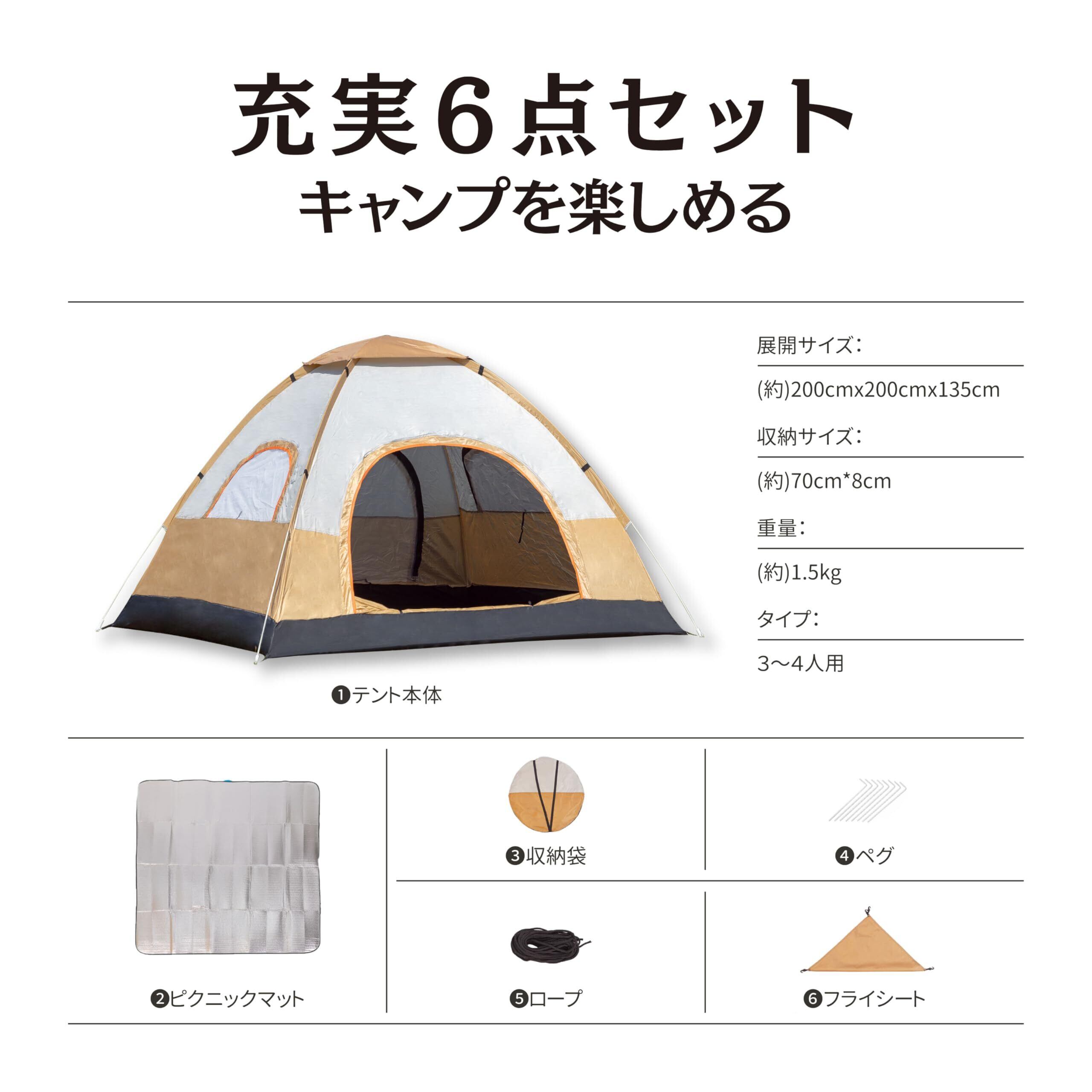 【付属品付き・用途】付属品:テント本体、収納袋x1、ペグx8、防風ロープx4、ピックニックマットx1 アウトドア、屋外フェス、ピクニック、花見、釣り、登山、運動会などにもピッタリで、災害時の防災用品としてもお使いいただけます。