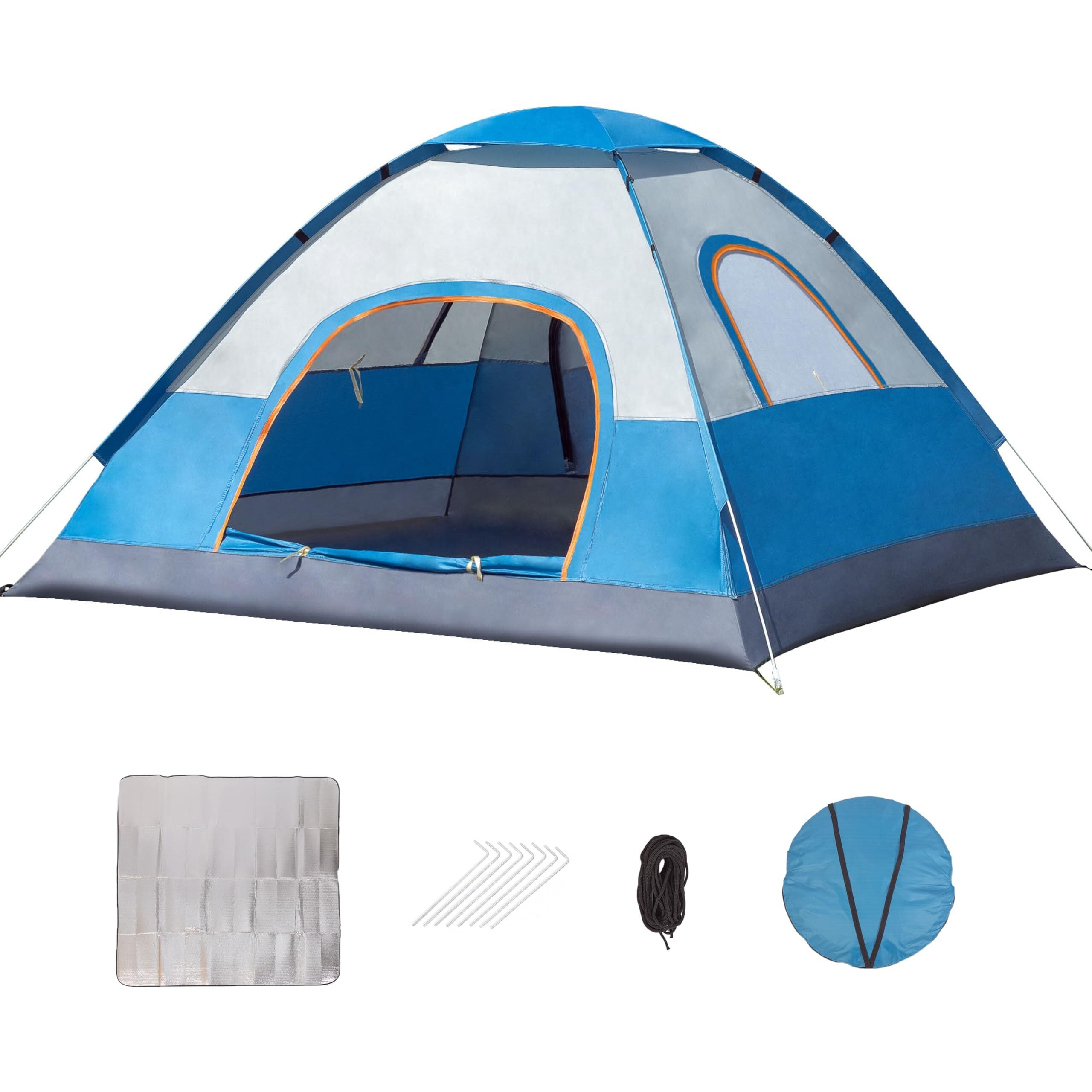 テント ポップアップテント 3~4人用 ドームテント 簡易テント キャンプテント 二重層 自立式 通気 防風防水 耐水圧2000mm UVカット加工 軽量 コンパクト アウトドア キャンピング 公園 登山用 簡単設営 収納袋・ピックニックマット付き