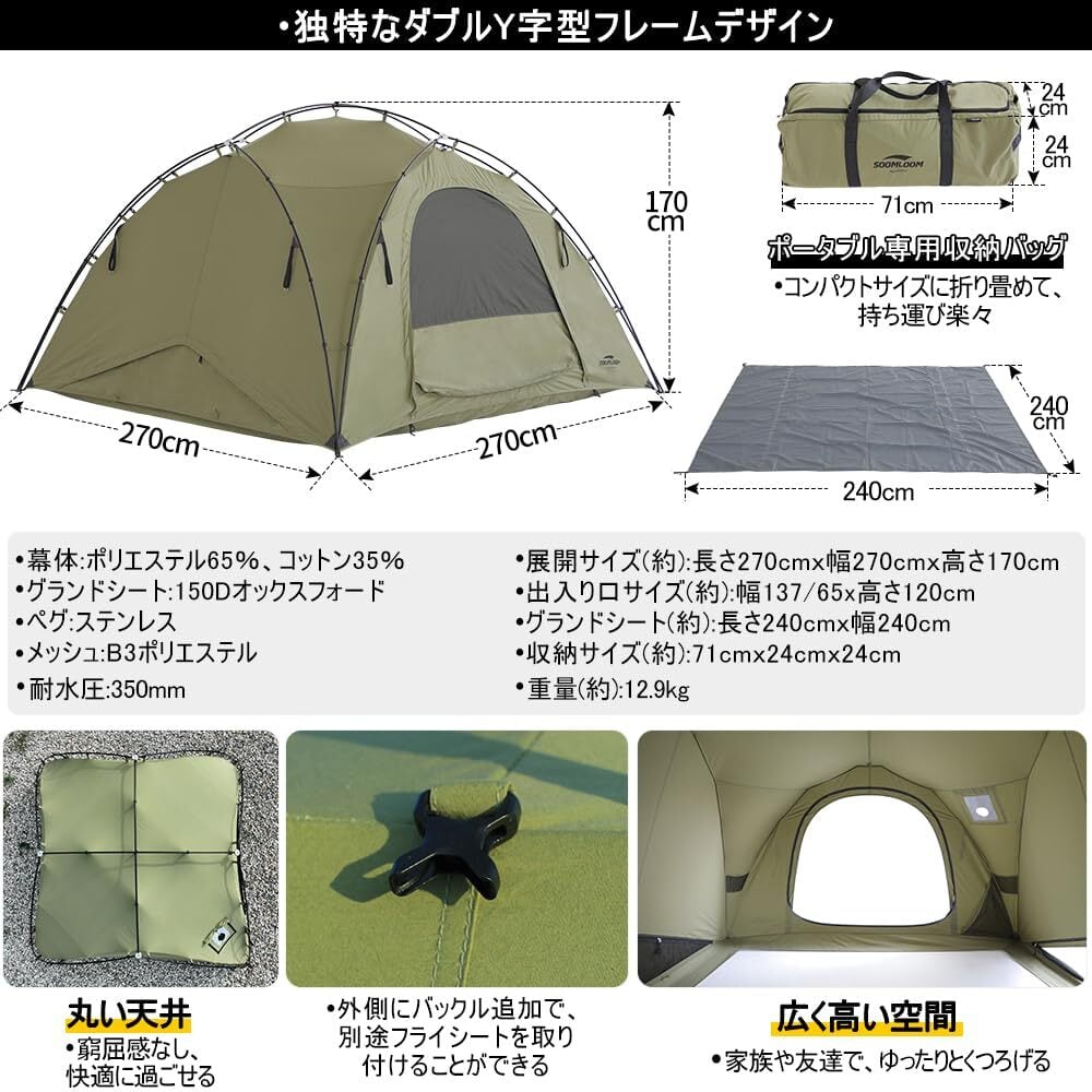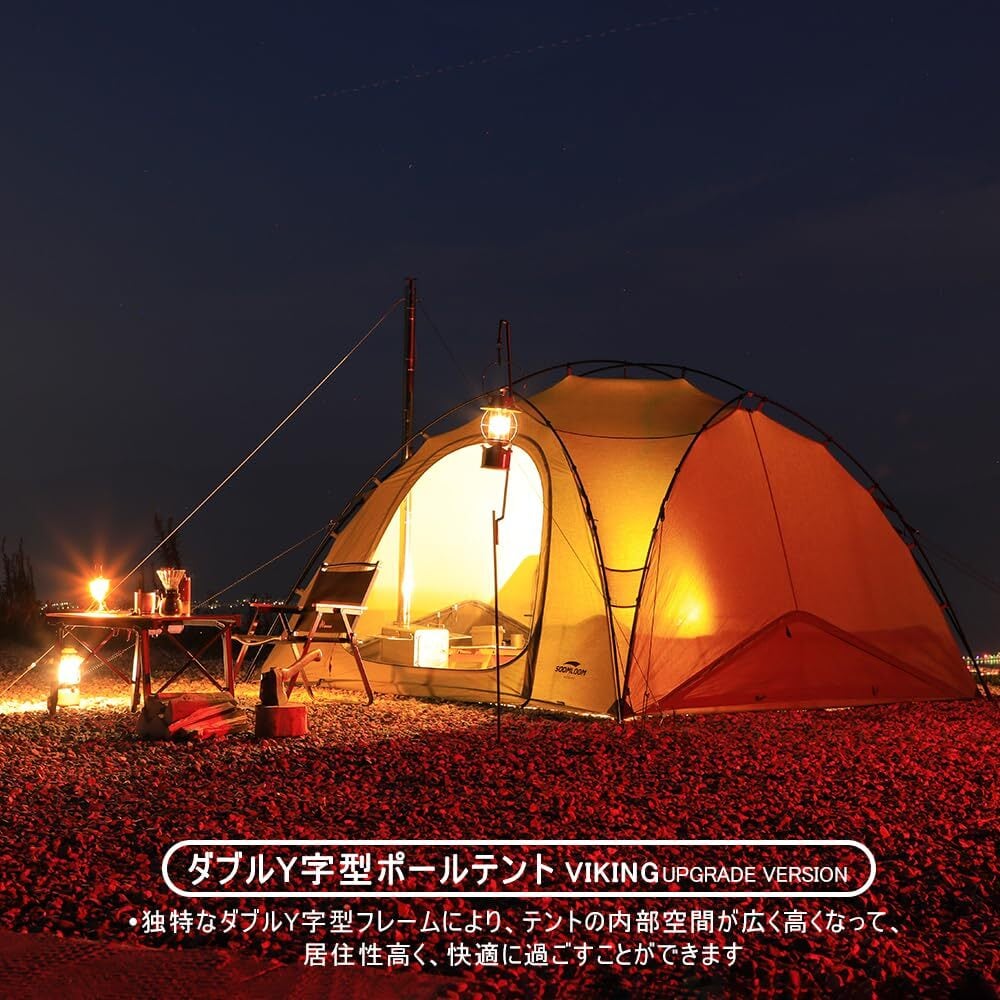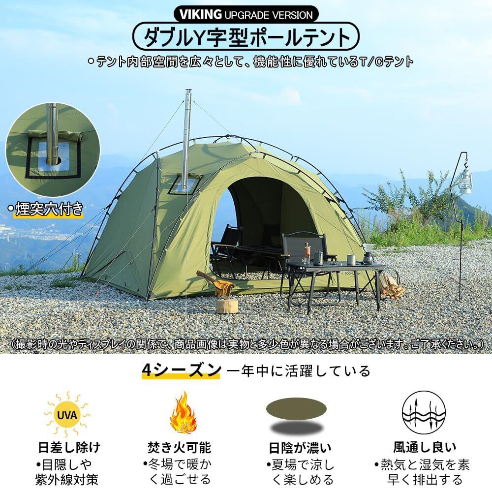 Soomloom ダブルY字型ポールテントVIKINGバージョンアップ焚き火煙突穴付きT/C素材家庭やカップルテント快適日除けポリコットン日陰濃い遮熱/耐火/難燃/耐久/耐水グランドシート付きキャンプ/アウトドアキャンピング