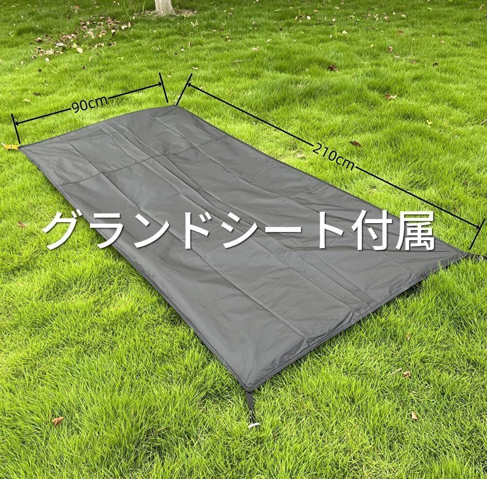 【防水・防風・耐久】 フライシートの材質 : 40D リップストップ 耐水圧5000mm ●下部の材質:210T リップストップ 耐水圧5000mm 、PU防水シームシール加工が施されており、雨天のキャンプや湿気が多い環境でも快適に過ごせます。 また、引き裂防止210Tナイロンフロア生地:混石の地面からテントフロアの破れを保護します。ペグとロープを使用すると防風力が大幅にアップします。