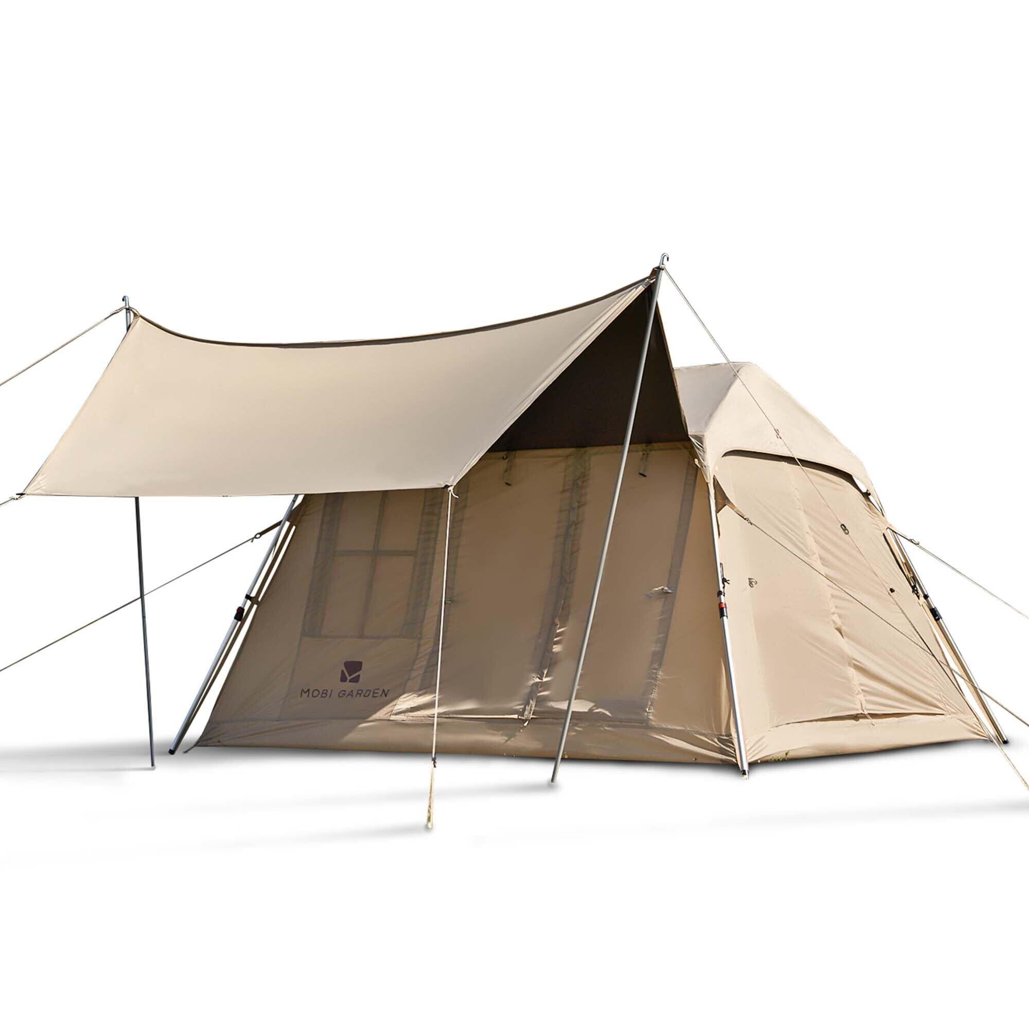 MOBI GARDEN ワンタッチ テント 2-4人用 拡張キャノピー キャンプ ロッジ型 UPF50+ 耐水圧2000mm 自立式 2重層 設営簡単 初心者向け 屋敷型テント お花見 おしゃれ 公園 収納袋付き