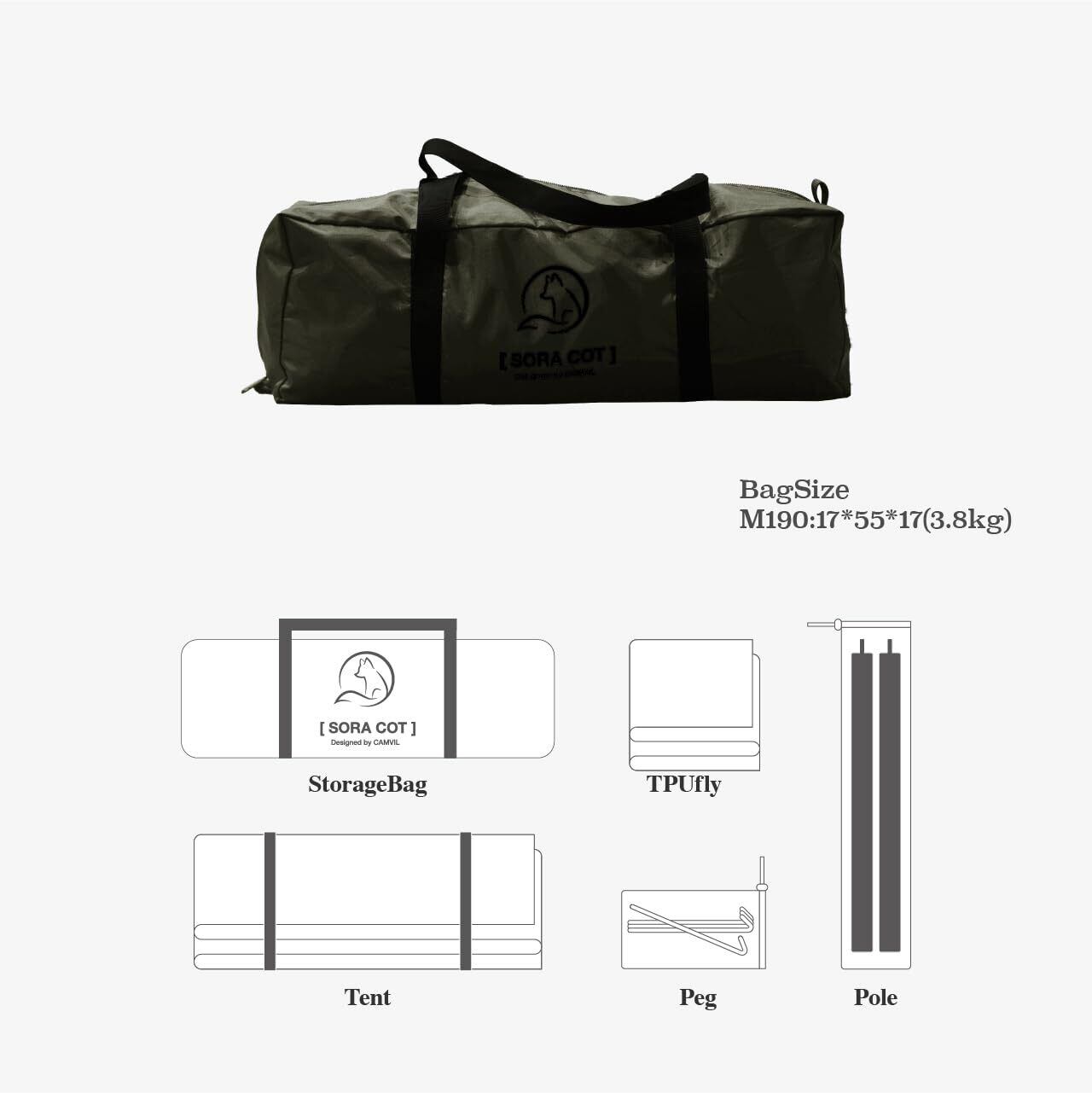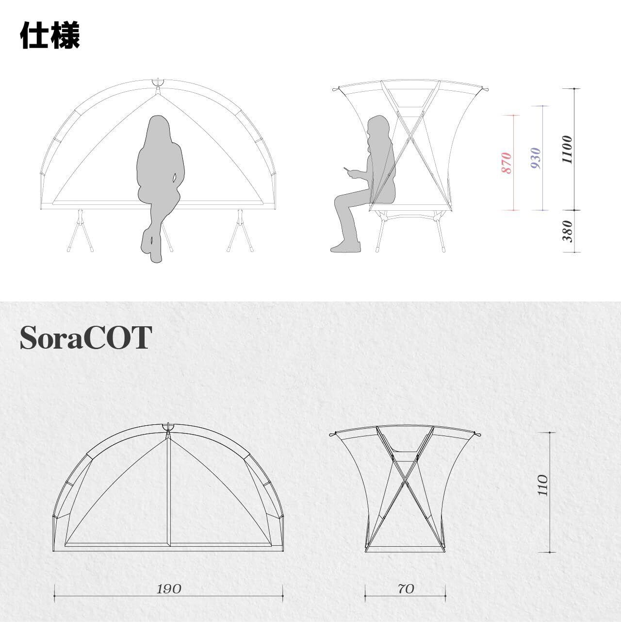 【在庫処分】SORA TC コットン シングルテント 防水外帳付き コットテント 軽量 ソロキャンプ 1人用テント 自転車/バックパッキング向け 前後ドア&TPU天窓 コンパクト収納 簡単設営