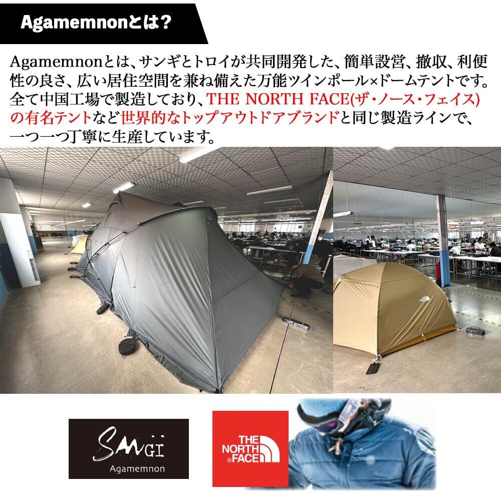 SANGI ツーポールテント ドームテント ツインポールテント AGAMEMNON(アガメムノン)【韓国発*Troiaと共同開発】 | (700*420*250) 大人数 キャンプテント大型幕 2人〜6人用 シルナイロン ストーブジャック付 設営簡単 1人〜設営可 UPF50+耐水圧7000mm