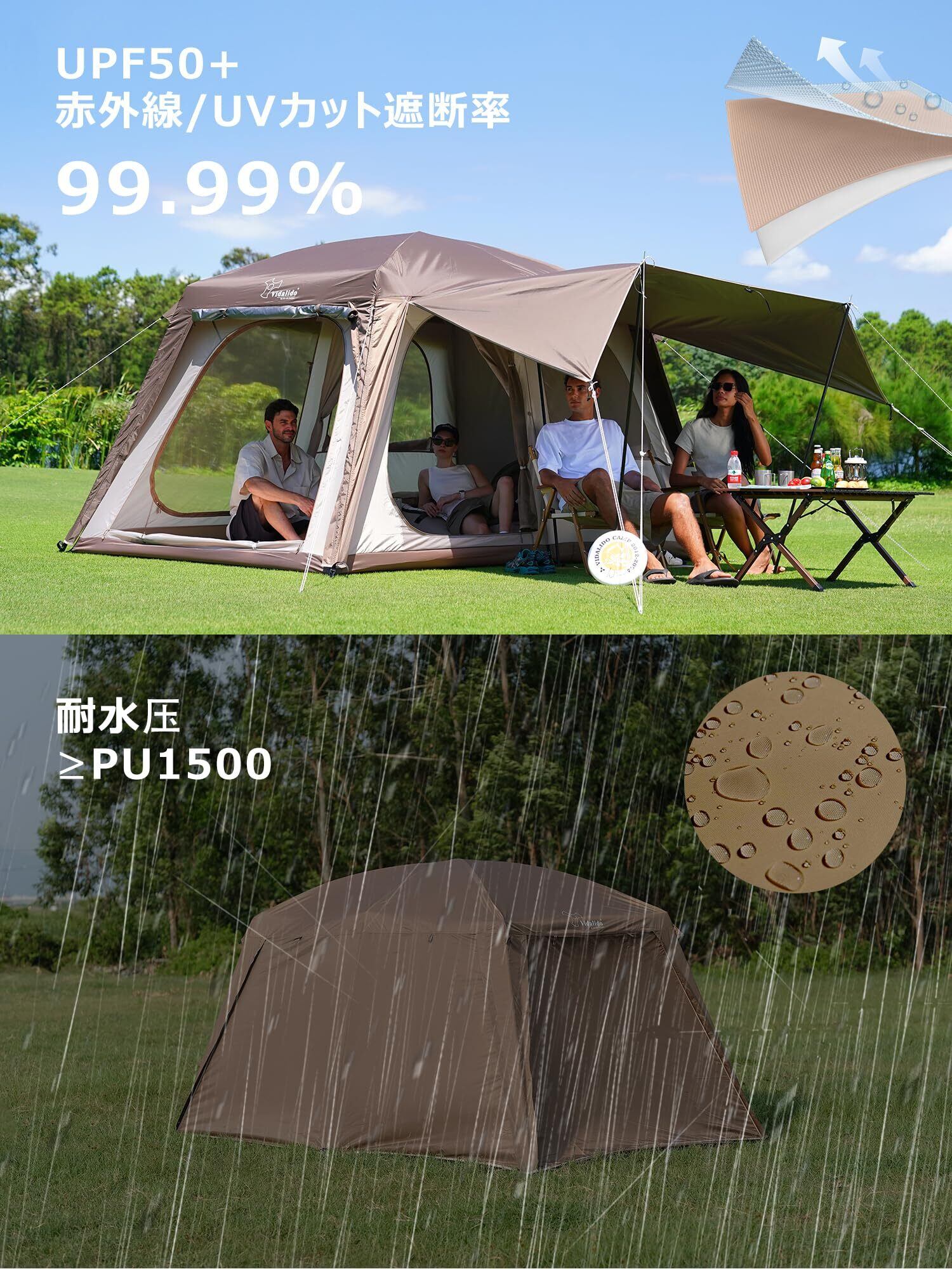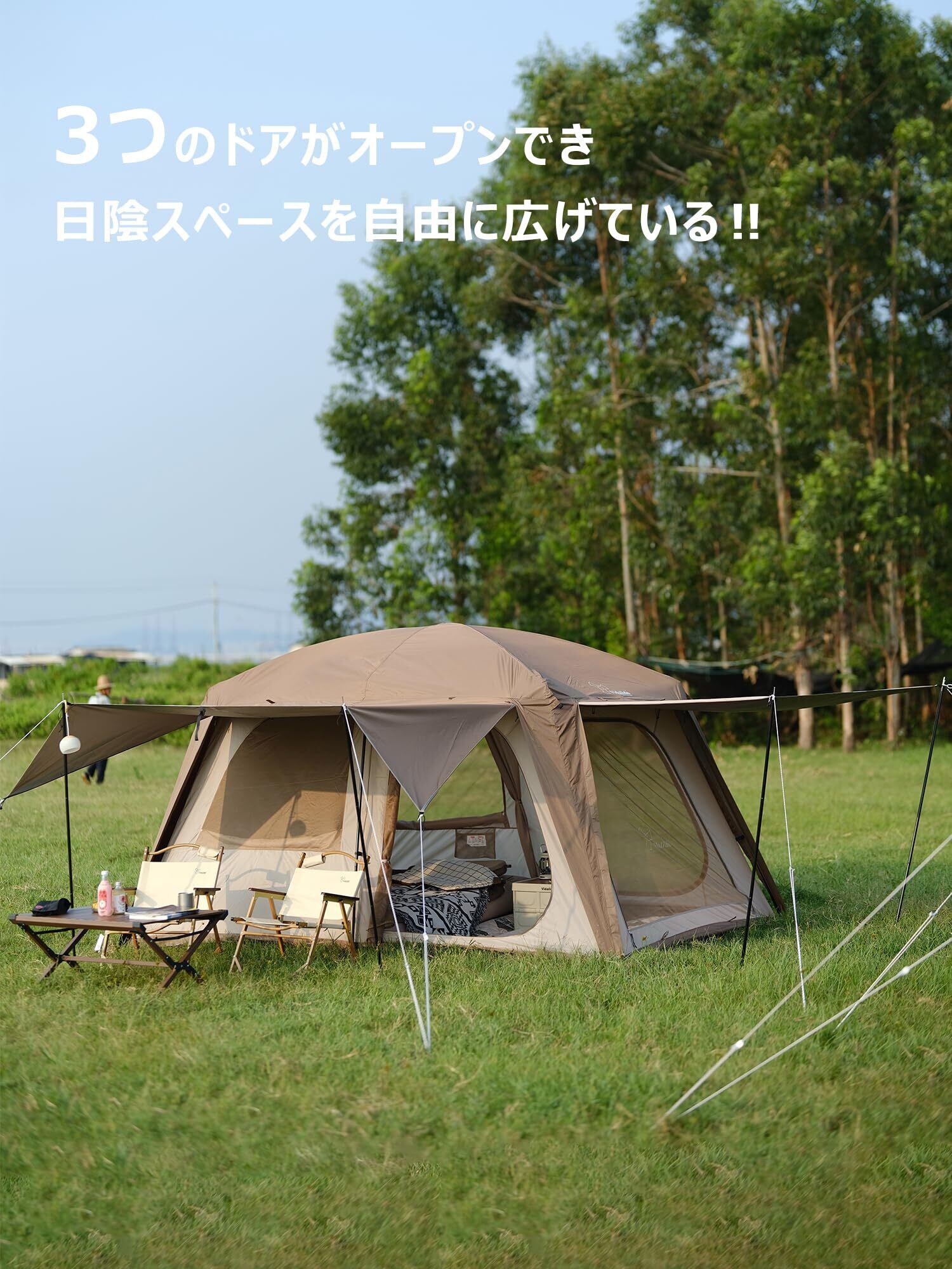 ➤【360日よけ】: 自信を持ってアウトドアを体験してください。シームレスなスチールポールを特徴とする当社の屋外キャンプテントは、あらゆる面から完全な照明を確保しながら、しっかりと雨や日差しから守ります。