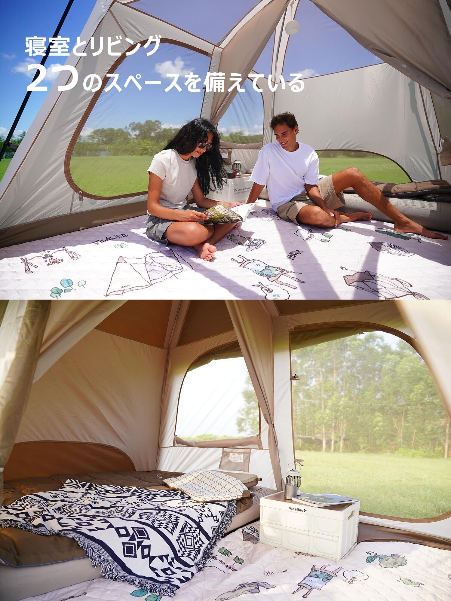【コスパの王者!17.22㎡ファミリーテント】Vidalido テント 大型 4人〜6人用 【3つの前室】 ツールームテント ロッジ型 おしゃれ ドームテント お花見 キャンプ 初心者向け 設営簡単 防風 紫外線対策 高耐水 自立式 4色