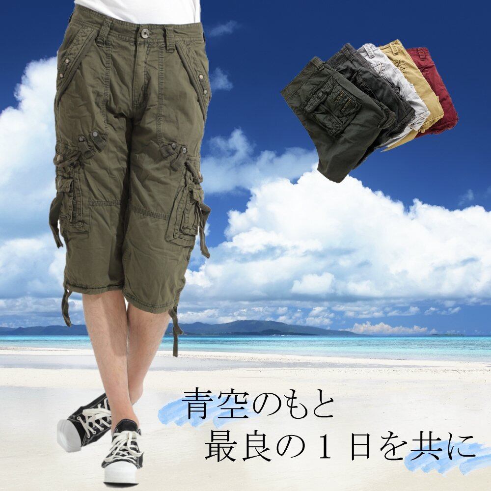 [Nail39] カーゴパンツ メンズ 大きいサイズ アーミー柄 ボトムズ ハーフ outdoor 七分丈 ポケット かっこいい 夏 アウトドア 釣り フィッシング ボトムス