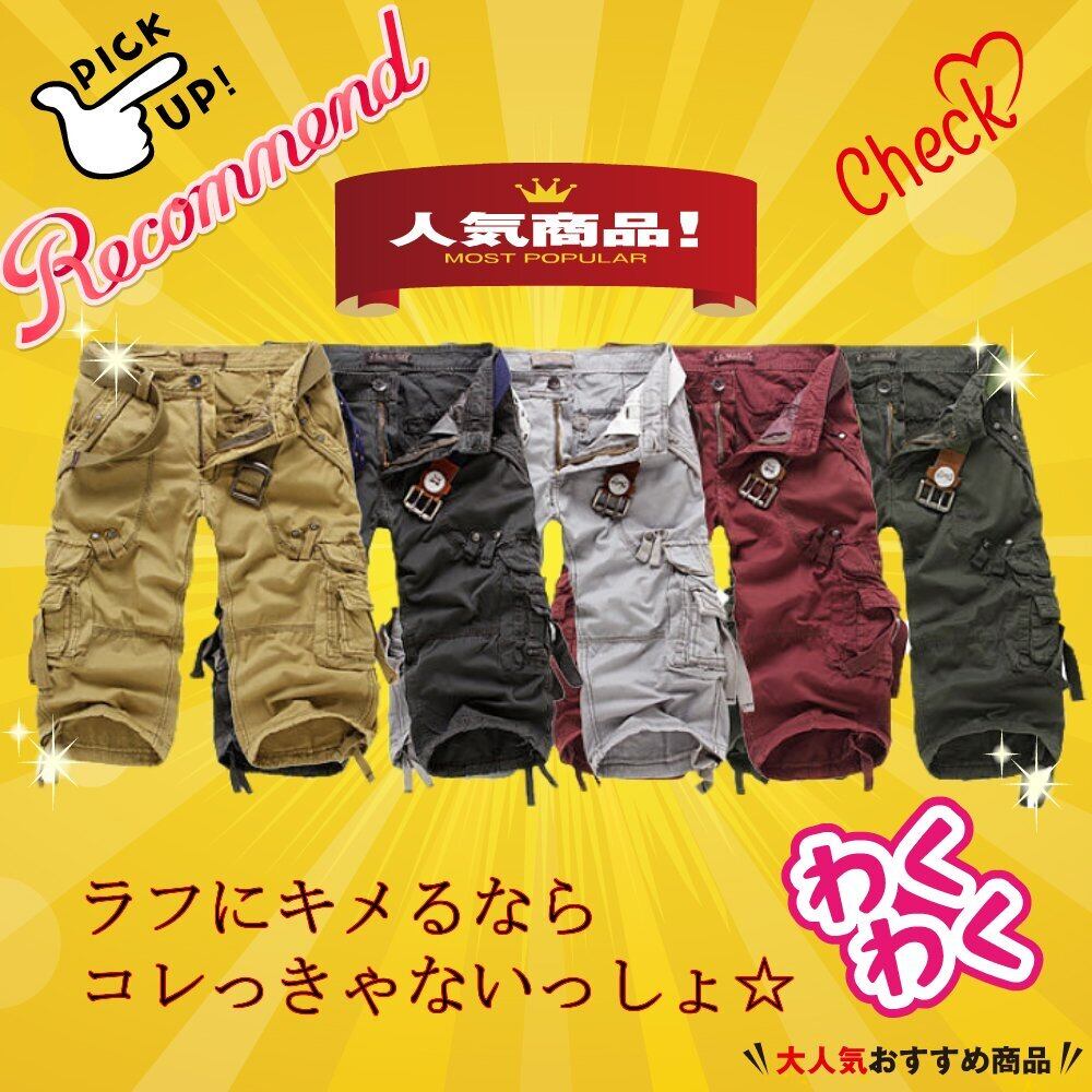 【特価セール】[Nail39] カーゴパンツ メンズ 大きいサイズ アーミー柄 ボトムズ ハーフ outdoor 七分丈 ポケット かっこいい 夏 アウトドア 釣り フィッシング ボトムス