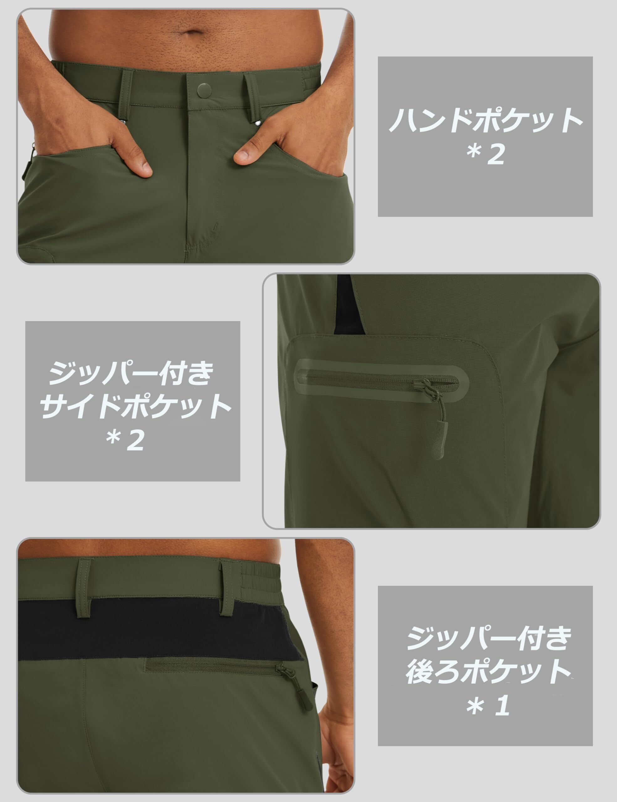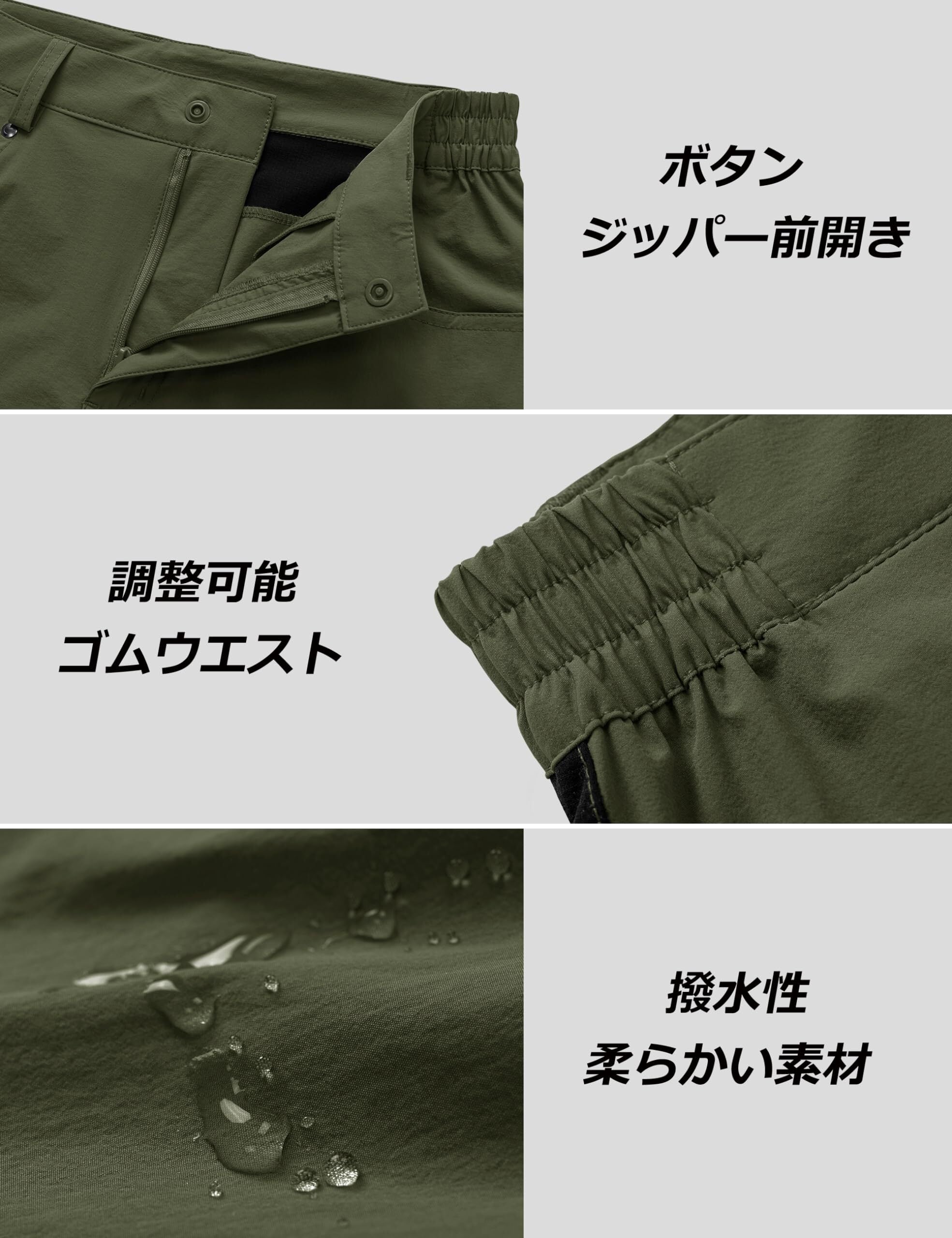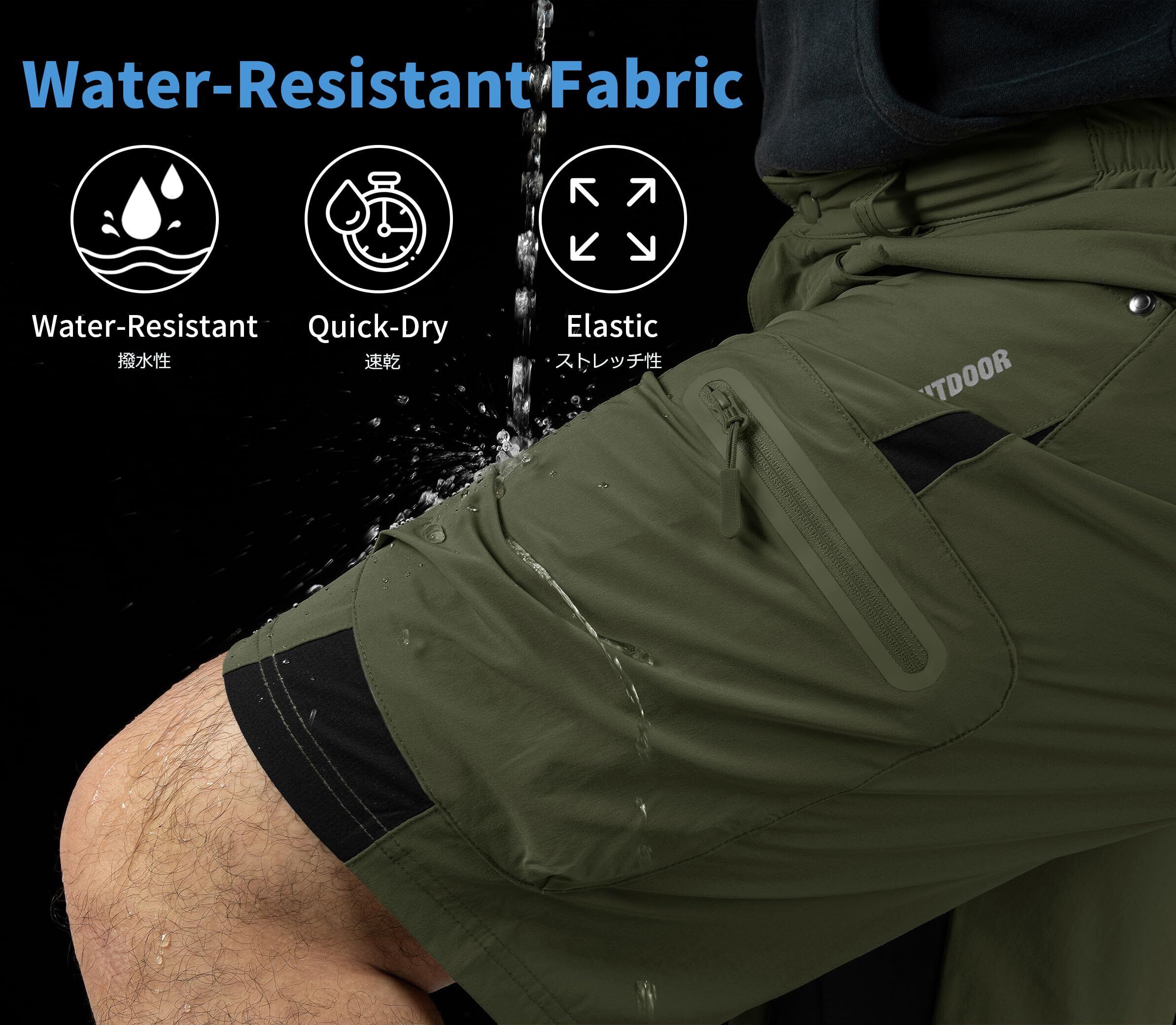 【多機能】速乾性・通気性に優れ、撥水加工も施しましたので、水に濡れても水を弾きます。残った水は浸透しても、素早く吸収し、乾燥させます。晴れの日も雨の日も活躍する速乾パンツです。そして、適度なストレッチ性で体をサポートしてくれるのでアウトドアやスポーツ、仕事も快適に。