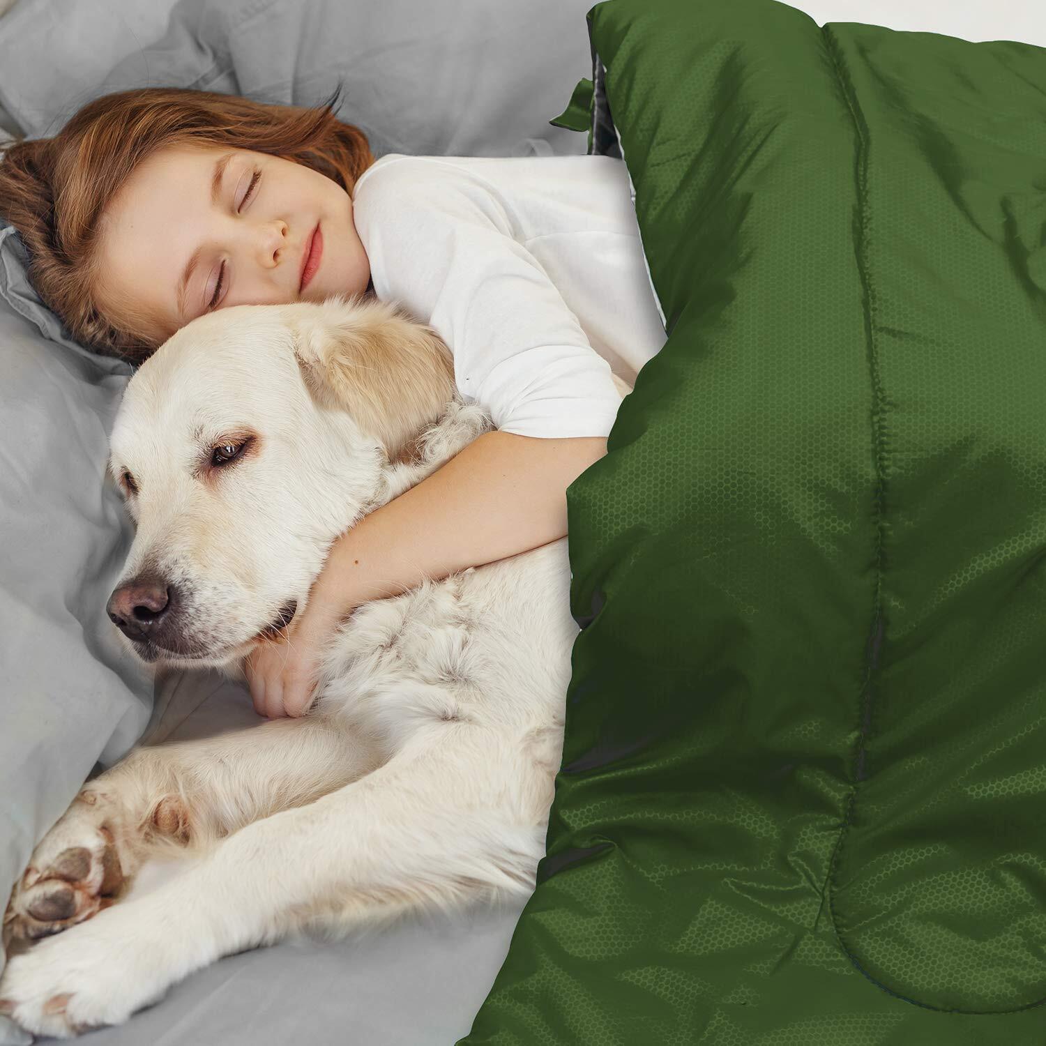 【良い寝心地と保温性】スリーピングバッグは保温性に優られ、自由に動かせる封筒型で、窮屈感のない寝心地を提供する。また、独自の高度な精製技術で製造された寝袋は、内側の空気が逃げるのを防ぎ、外側の冷気が侵入するのを防ぐため、保温性は抜群、寒い時期でも爆睡で心地良く眠れる。