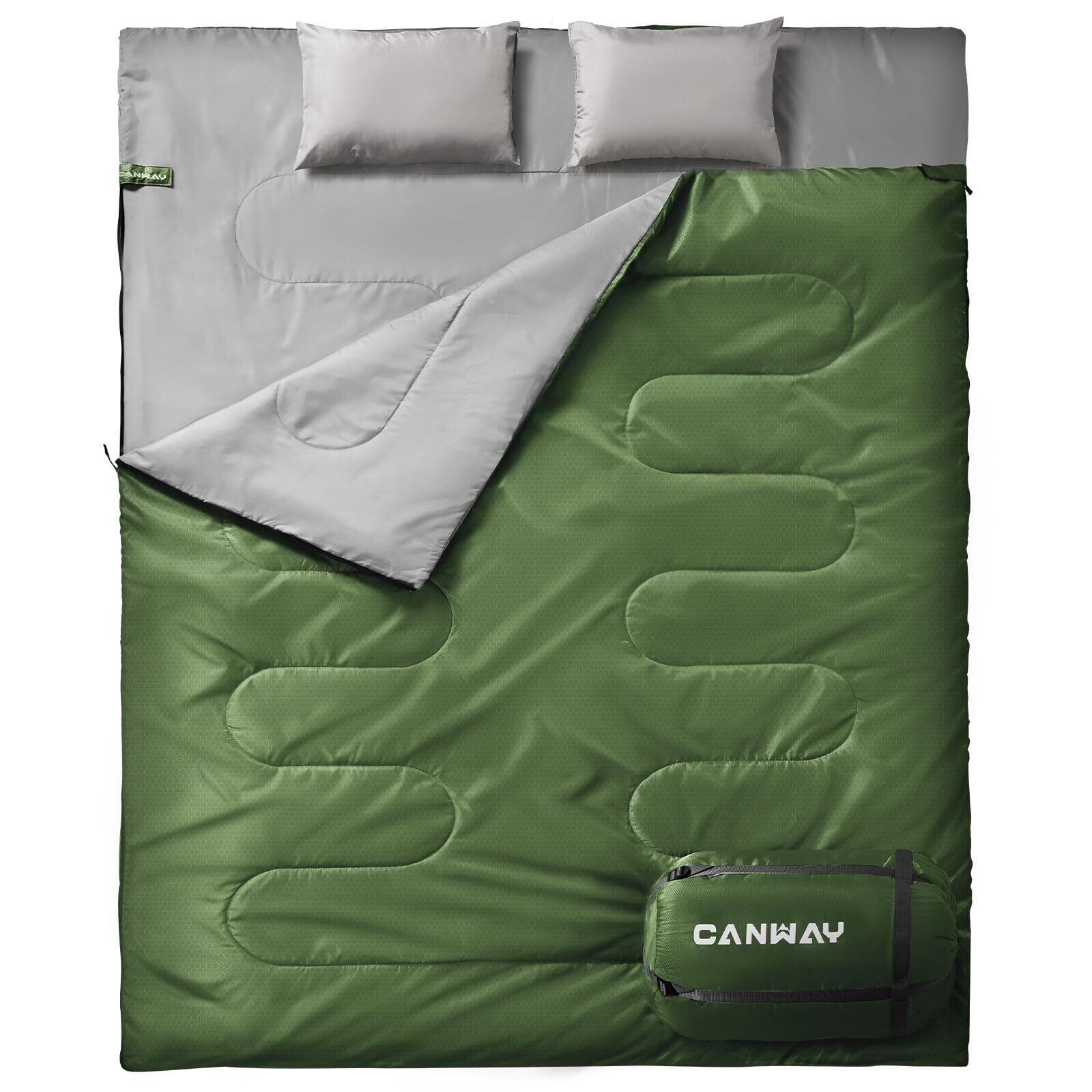 CANWAY 寝袋 2人用 防水シュラフ スリーピングバッグ 封筒型 キャンプ 連結解体可能 車中泊 防災用 災害時 避難用 コンパクト 最低温度0度 枕2つ・収納パック付 丸洗い 3カラー選択可能
