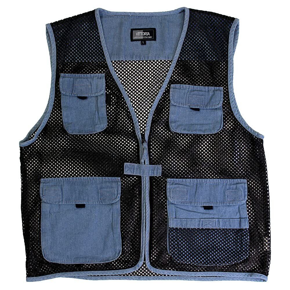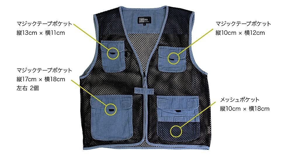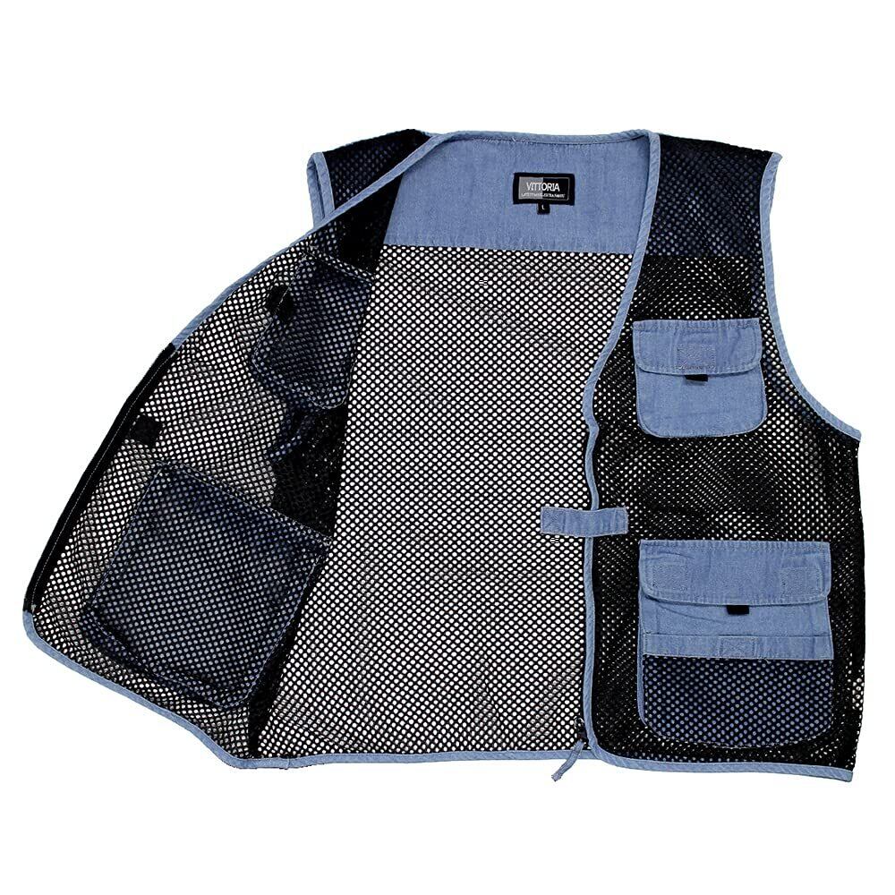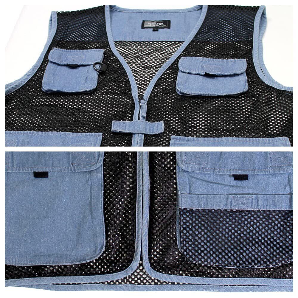 [VITTORIA] (ビットリア) デニムメッシュベスト 軽量 通気 暑さ対策 アウトドア キャンプ 釣り フィッシングベスト カメラマン撮影用 登山 カジュアルベスト
