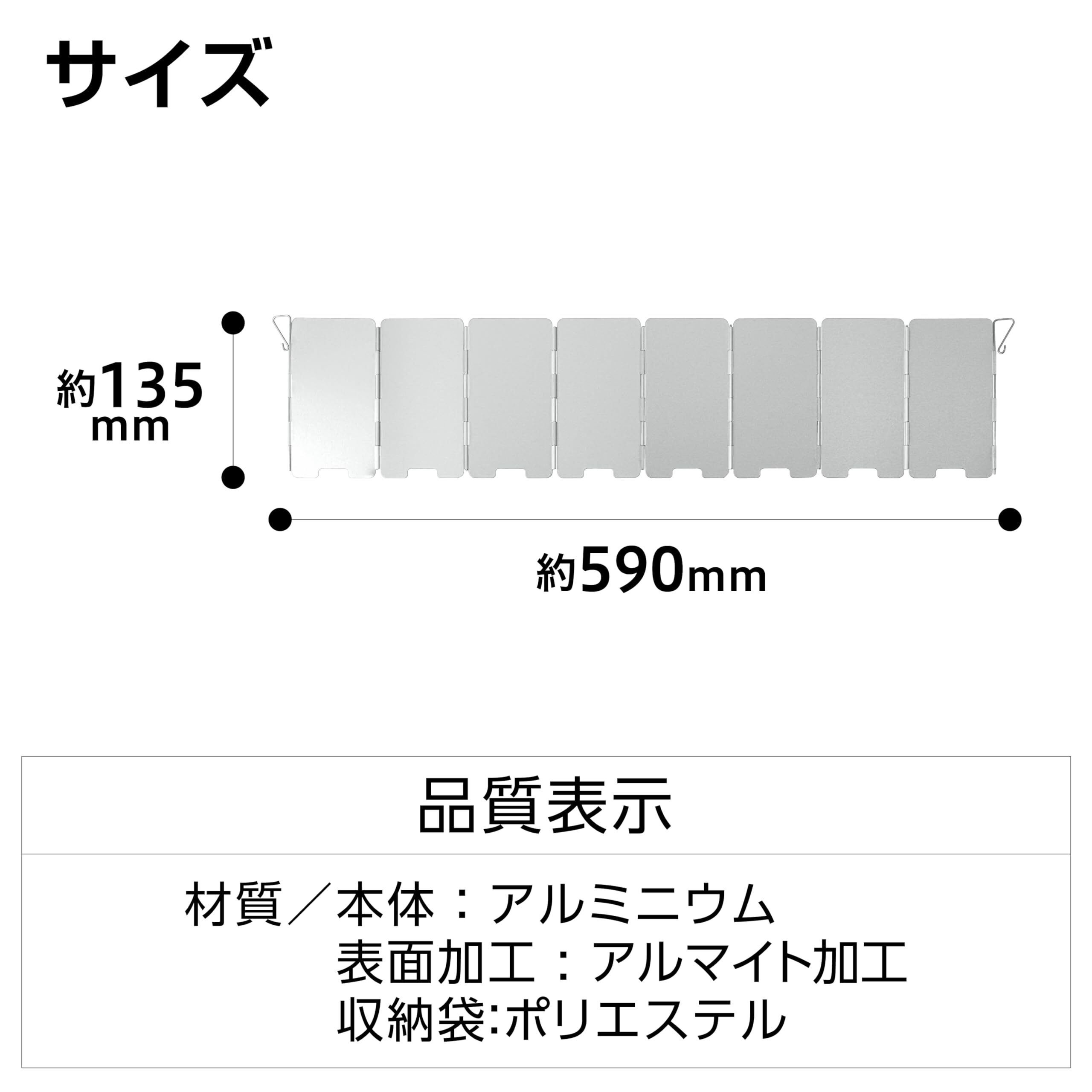 髙儀(Takagi) ウィンドスクリーン 小 590×135mm 簡易的な風除けに 風よけ 防風 材質:アルミニウム 折りたたんで持ち運びに便利 収納袋付き キャンプ キャンプ用品 ソロキャン アウトドア 野外用 登山 調理器具 災害時 高儀 たかぎ TAKAGI