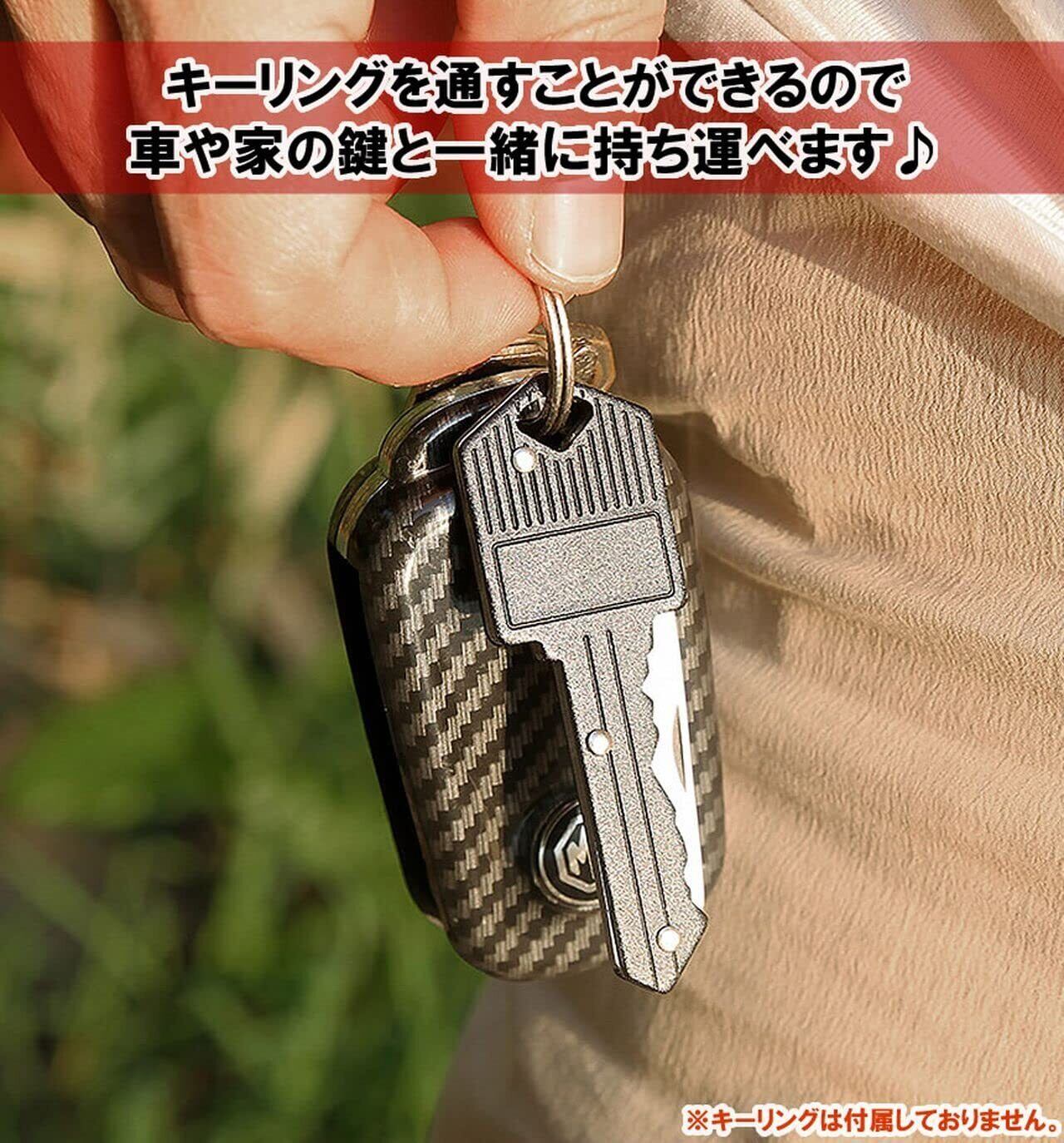 キーリングを通す穴が開いているので、車や家の鍵と一緒に持ち運べます!