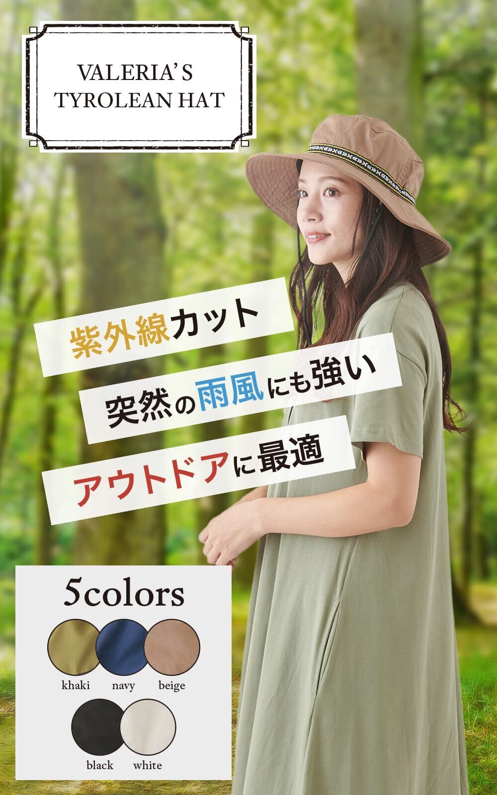 [valeria] 撥水 アウトドアハット あご紐付き サイズ調整可能 チロリアン サファリハット ユニセックス レギュラーサイズ 58cm 小顔効果