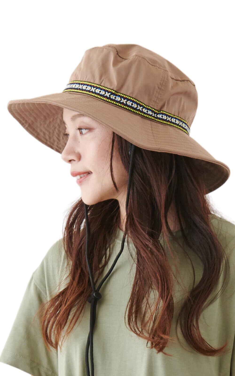 ◆UVカット、撥水加工、あご紐つき、サイズ調整可能、機能が盛りだくさんのアウトドアハットです(^^)かわいいチロリアンテープがワンポイントアクセント。もはや定番のハットで、お洒落にも欠かせません!アドベンチャーハット、サファリハットとも呼ばれている帽子です。