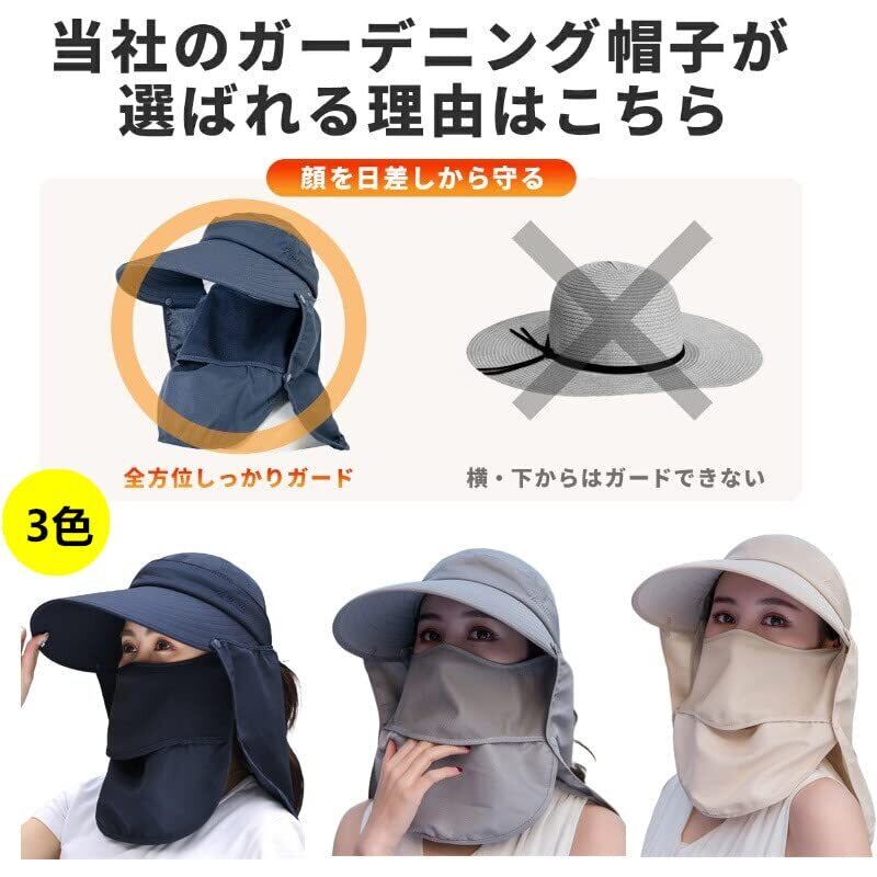 帽子 レディース uvカット - UVカット:360度、顔だけでなく頭から首の後ろ部分までしっかりガード! 大きなつば、日除け垂れ、フェイスカバーが日差しをしっかりガード!ファスナー付きだから簡単に帽子上部を取り外しでき、サンバイザーとしても使えます。