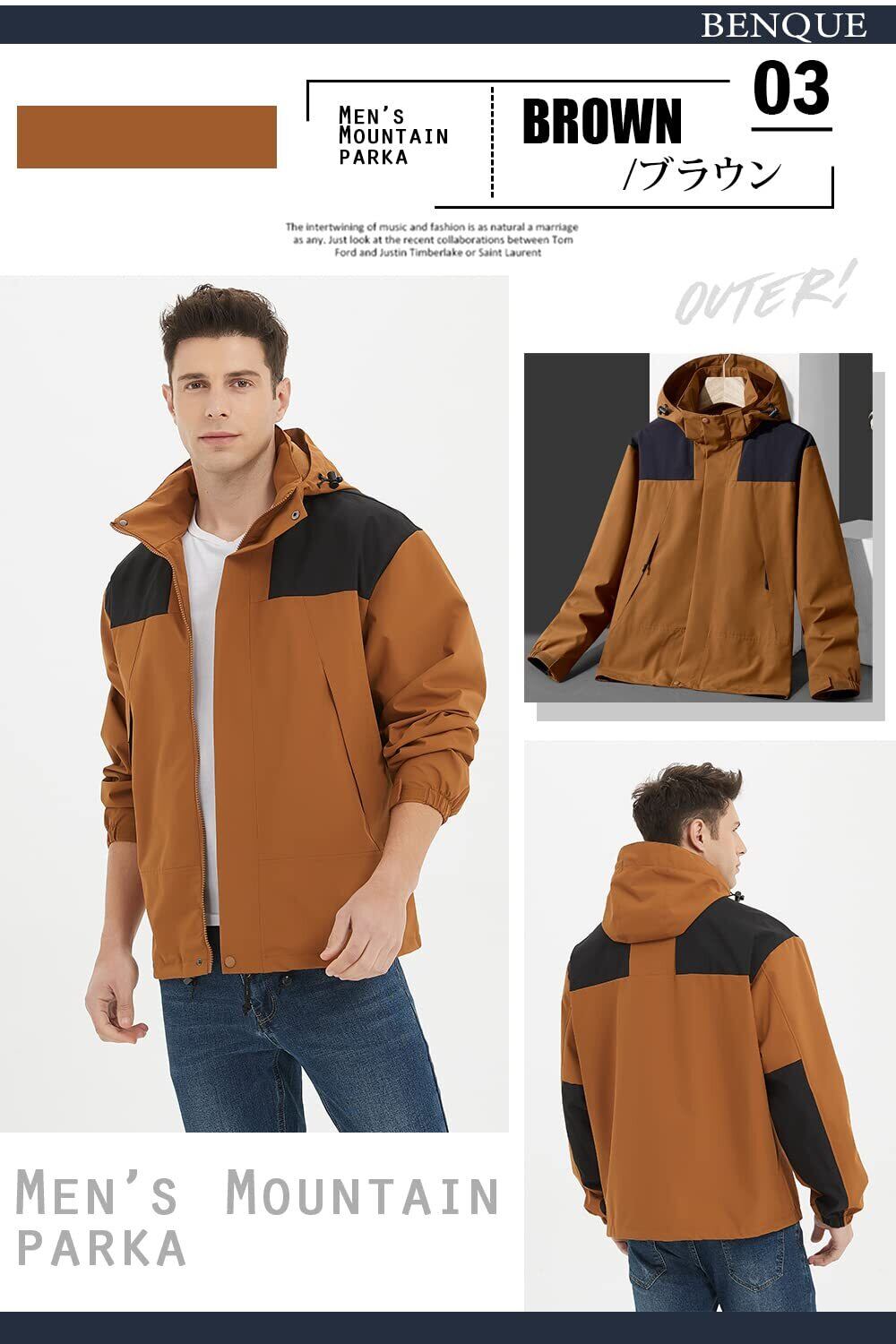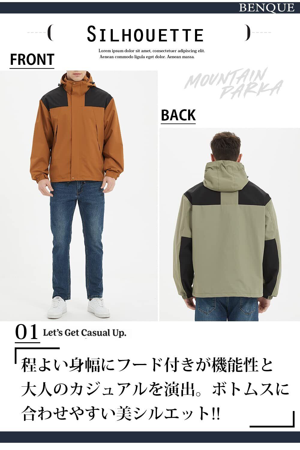 [ベンケ] 【快適な着心地】 マウンテンパーカー メンズ ウェア 登山 ジャケット アウトドアジャケット キャンプ 防寒 ウインドブレーカー 撥水