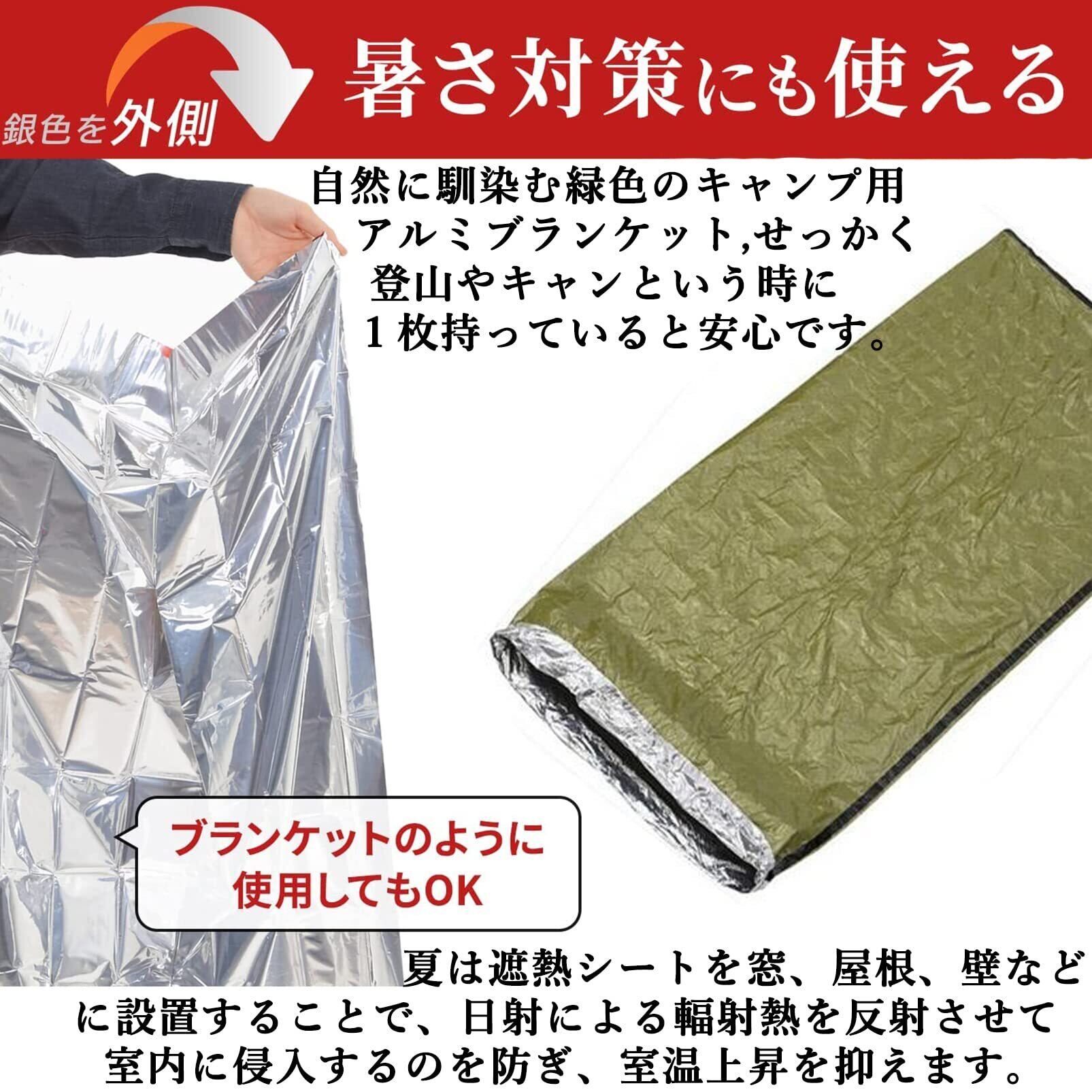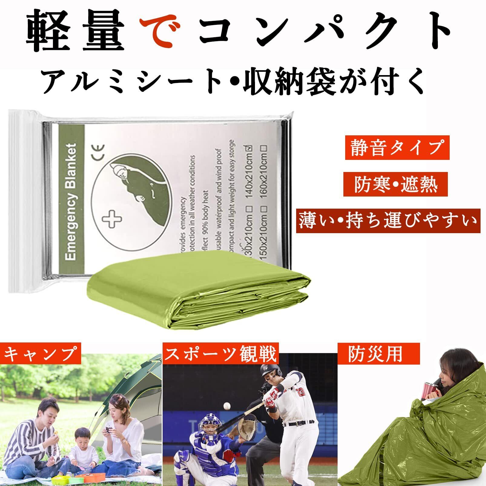 アルミシート 断熱シート グリーン 2枚 軽量 コンパクト アルミブランケット サバイバルシート エマージェンシーシート 防災 防寒 遮熱 静音 夏 冬 窓 キャンプ 登山 非常用 温熱シート