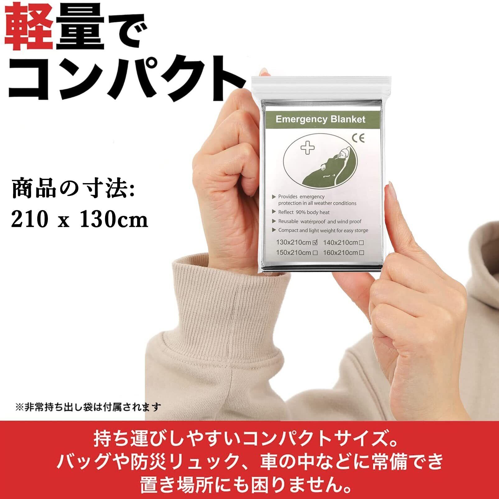 【軽量・コンパクトなアルミブランケット】このアルミシートは大きさも210cmかける130cmと体をすっぽり包めるほど大きいので、体格の大きな男の人でも余裕を持って使えます。また、断熱シート重量約70gと軽量で、ポケットに入るくらい小さく折り畳むことができ、持ち運びが簡単。