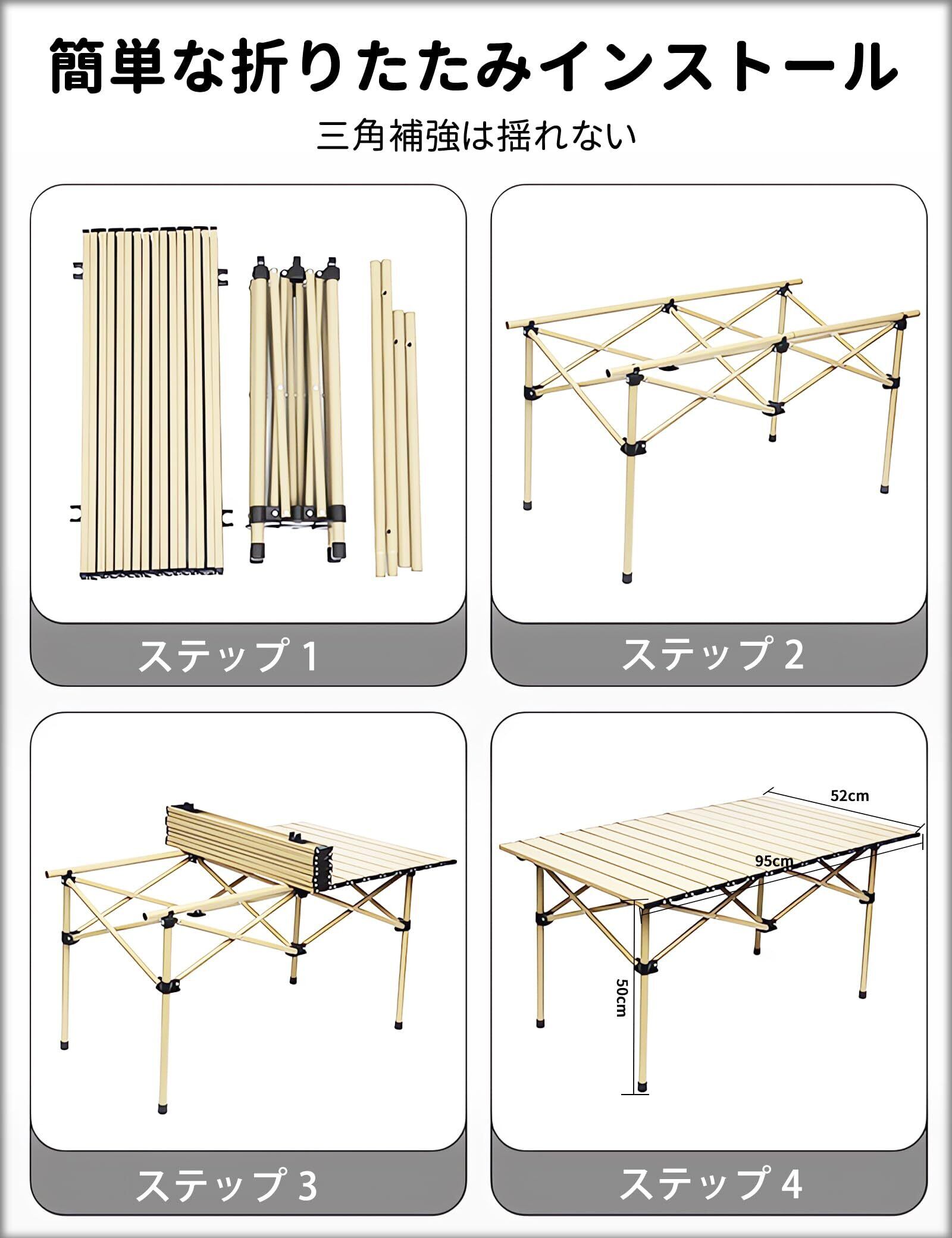 簡単な組み立て:折りたたみテーブル&チェアセットは、一体型設計のおかげで工具なしで簡単な折りたたみと展開の操作で、時間と労力を節約し、屋外での食事や休憩スペースを素早く構築できます。簡単な取り付けで、より多くの時間を屋外で楽しむことができます。