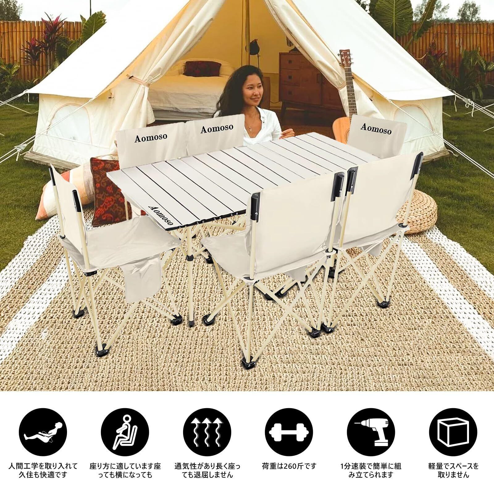 【人気商品】アウトドア テーブル チェア 7点セット アルミテーブル椅子 ピクニック ベンチセット ピクニックテーブル 超軽量 折り畳み 組立簡単 収納バッグ付き BBQ お釣り テント ガーデン 屋外 キャンプ用品 (7, ベージュ) | paghag