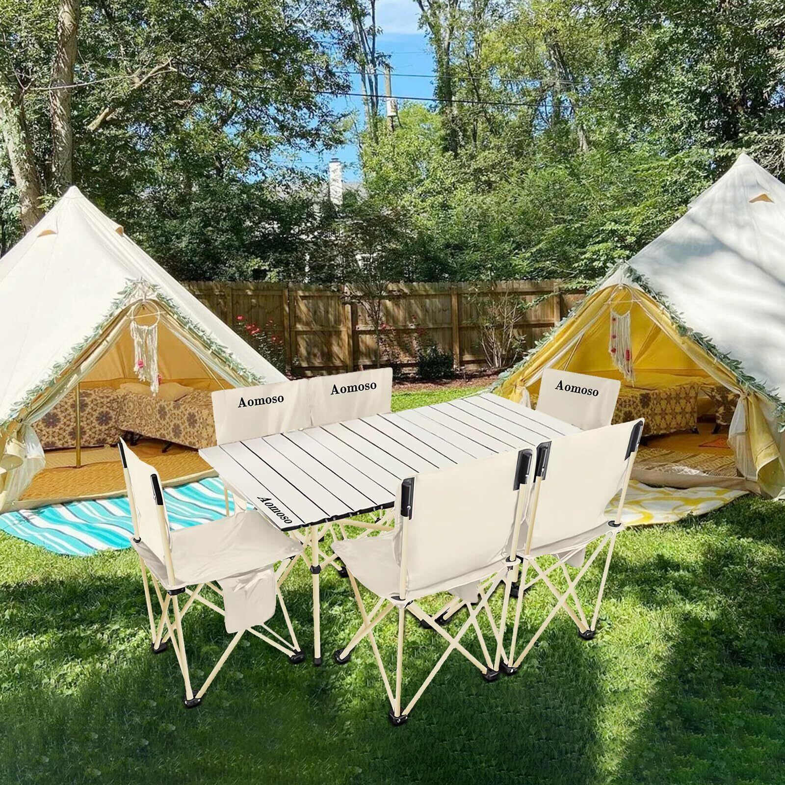 アウトドア テーブル チェア 7点セット アルミテーブル椅子 ピクニック ベンチセット ピクニックテーブル 超軽量 折り畳み 組立簡単 収納バッグ付き BBQ お釣り テント ガーデン 屋外 キャンプ用品 (7, ベージュ)