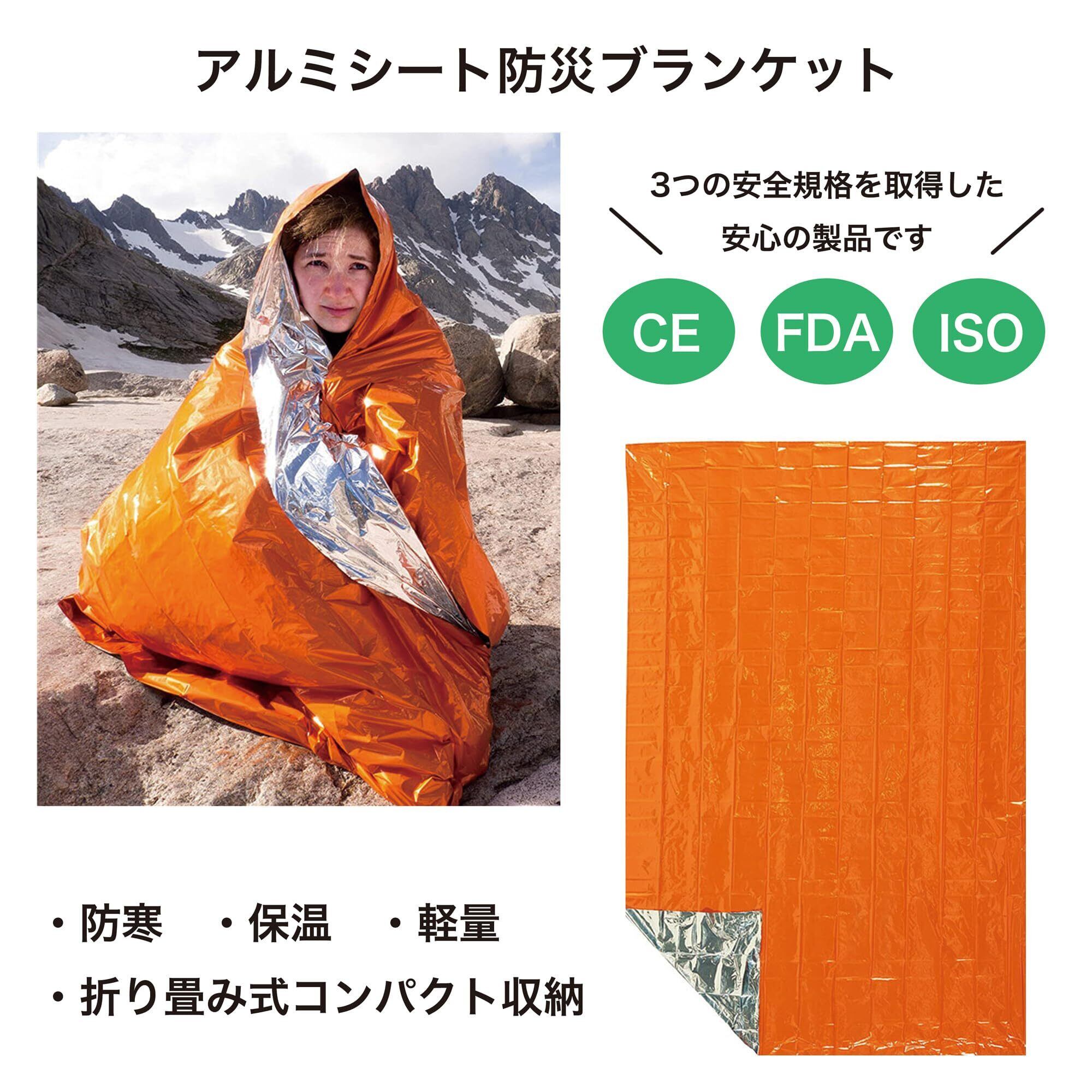 【防災ブランケット アルミシート】非常時や災害時、アウトドアやキャンプなど、いざという時に役に立つアイテムです。保温性・防寒対策・断熱効果など様々な用途ができます。