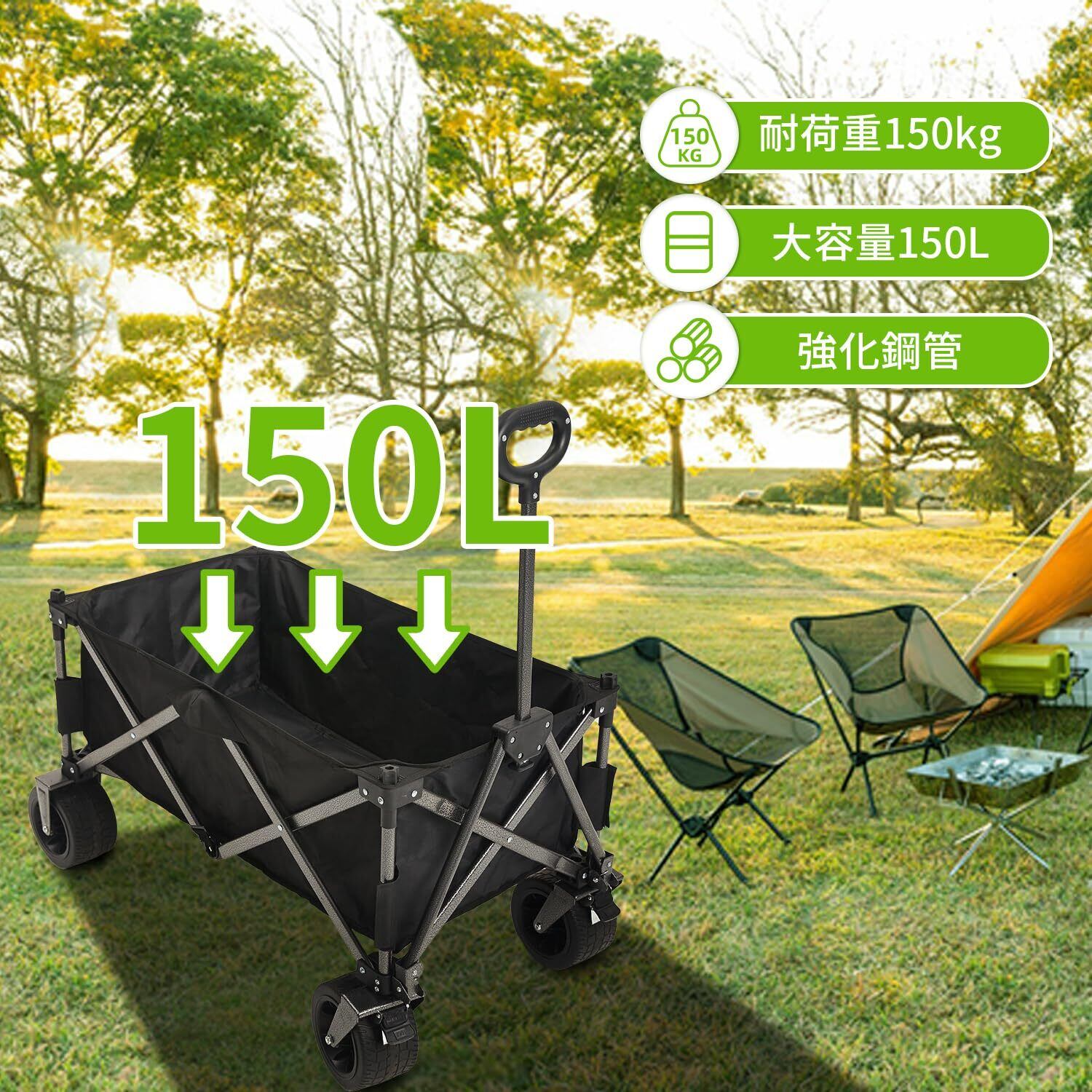 【新着商品】UNE キャリーワゴンラベルカー 折り畳み【9.5cm特厚タイヤ 収納付き】大容量150L 耐荷重150kg ワンタッチ折りたたみ ブレーキ付き 山道・キャンプ・荷物運搬・アウトドアトラベルカーに
