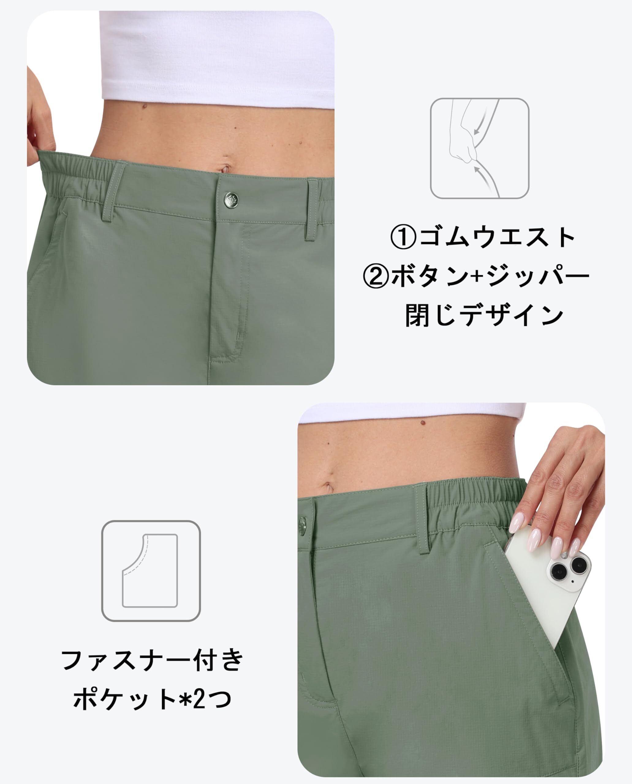 [YIRUIYA] ハーフパンツ レディース アウトドア パンツ ショートパンツ トレッキングパンツ 山登り 撥水 スポーツ ゴルフウェア カジュアル ハイキング キャンプ ポケット付き 旅行 普段着