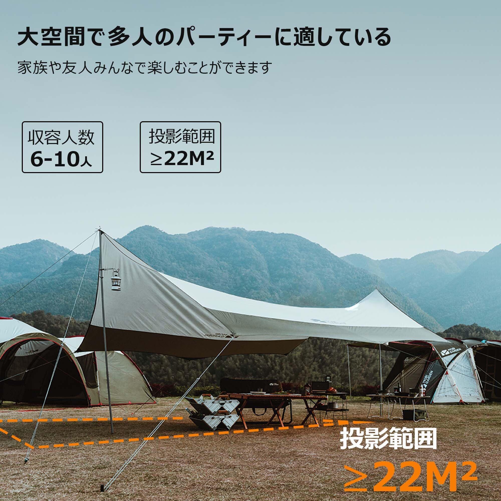 【シルバーガム塗層加工・遮熱性UP】タープの裏面に紫外線防止のシルバーコーティングが施されていますので、UVカットが優れており、日差しが強い時にしても充分な日陰を確保できます、屋外で使用するには最適。夏には陽射を遮り、冬にはタープの下で皆がストーブを囲んで暖を取ることやバーベキューをして快適です。春夏秋冬を問わずご利用いただけます。