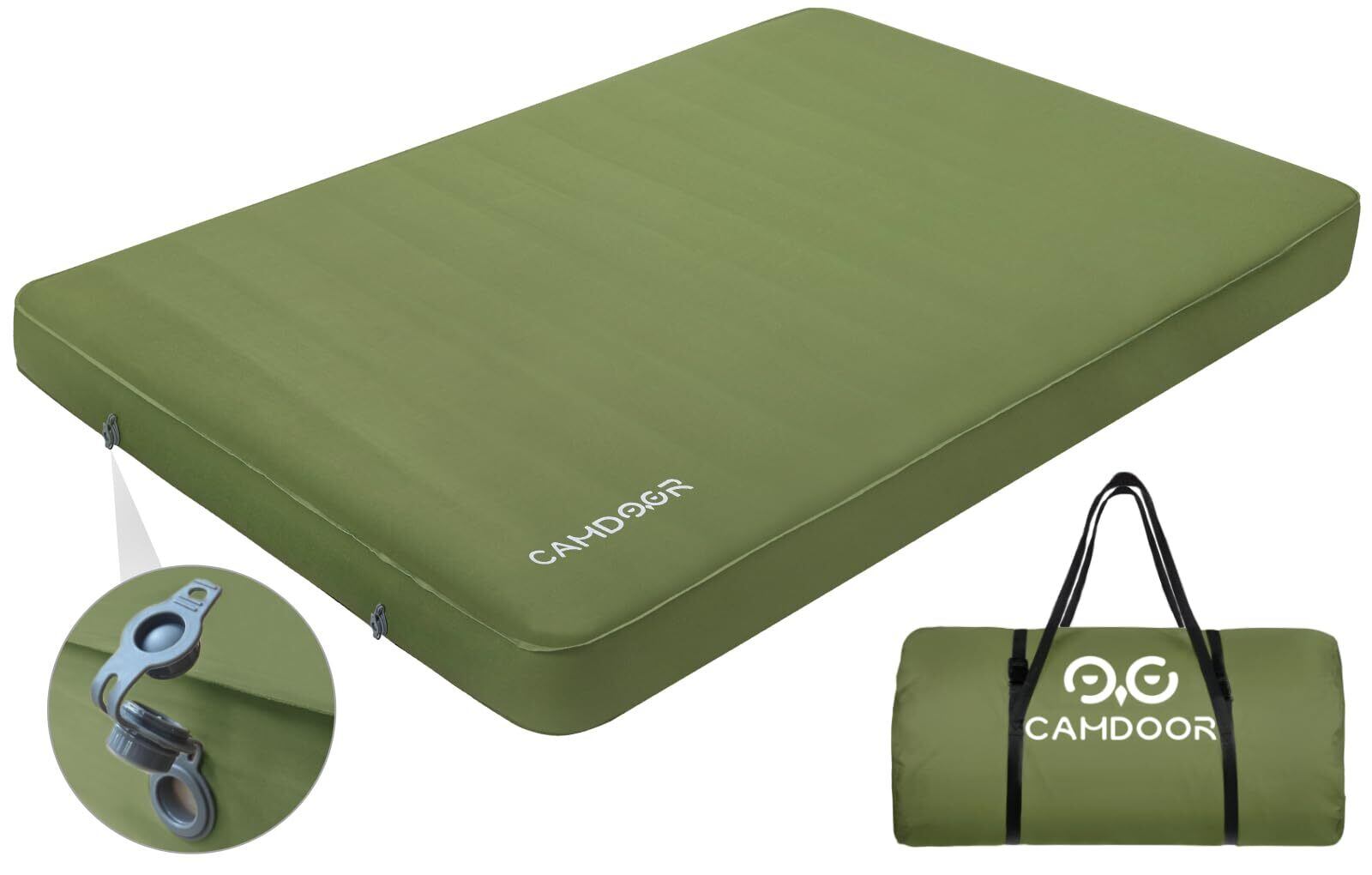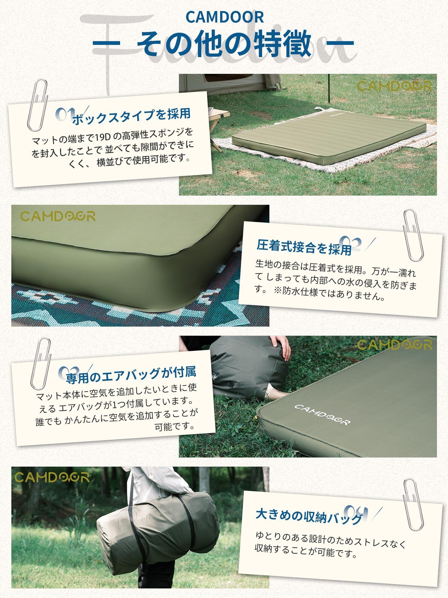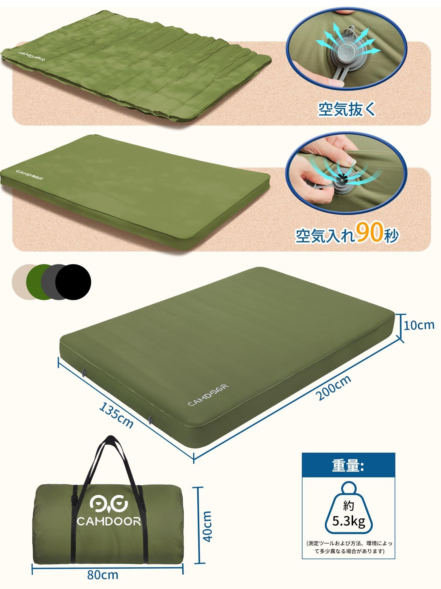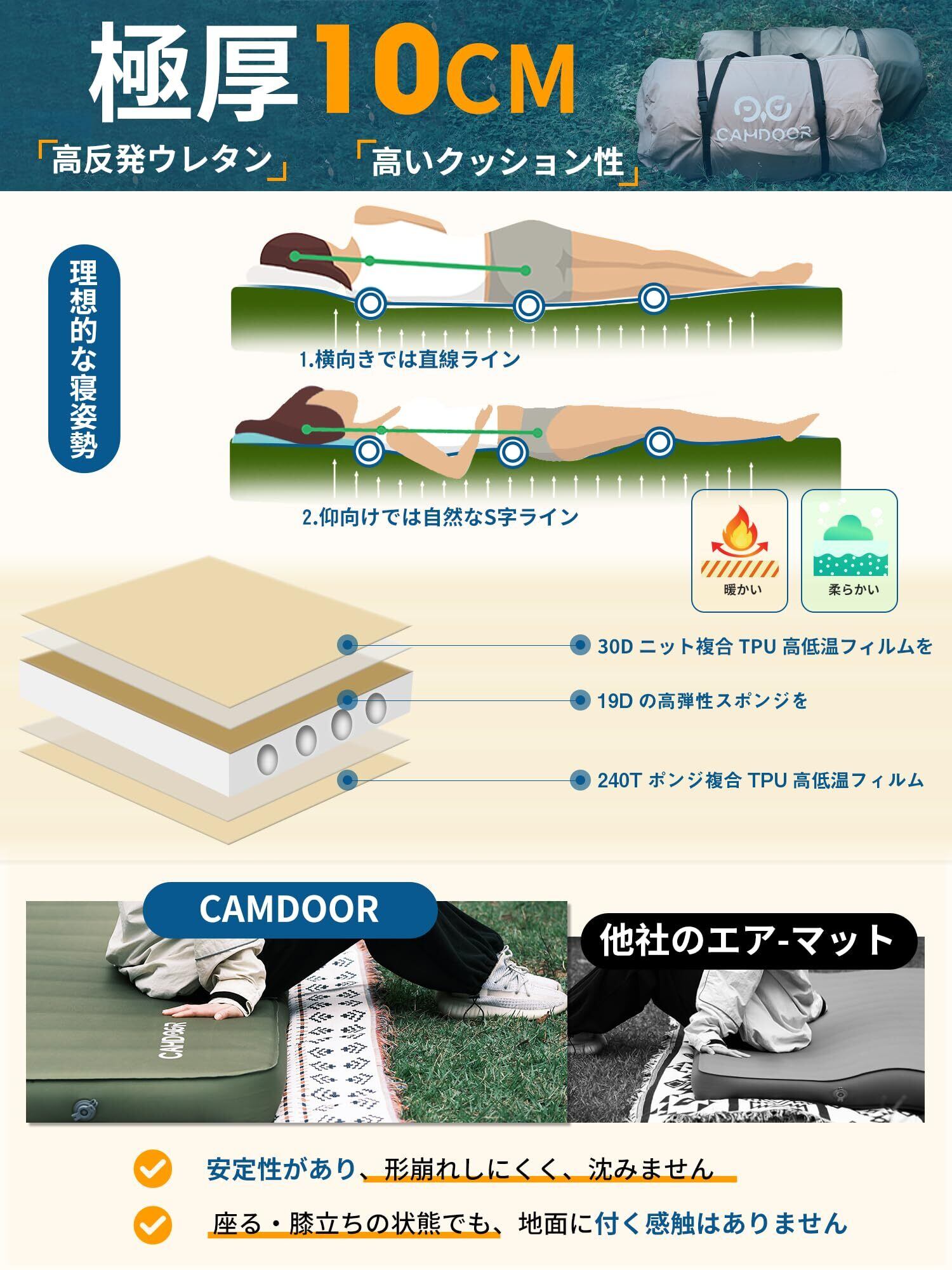 【2022最新】キャンプ マット エアーマット ダブル 厚手 10cm 【90秒自動膨張・ソフトな手触り】インフレーターマット 自動膨張 キャンパー 車中泊 キャンプ用品 防水防潮 防災 安全無臭 四季使用可能 インフレータブルバッグと収納バッグ付属 持ち運び便利 簡単収納