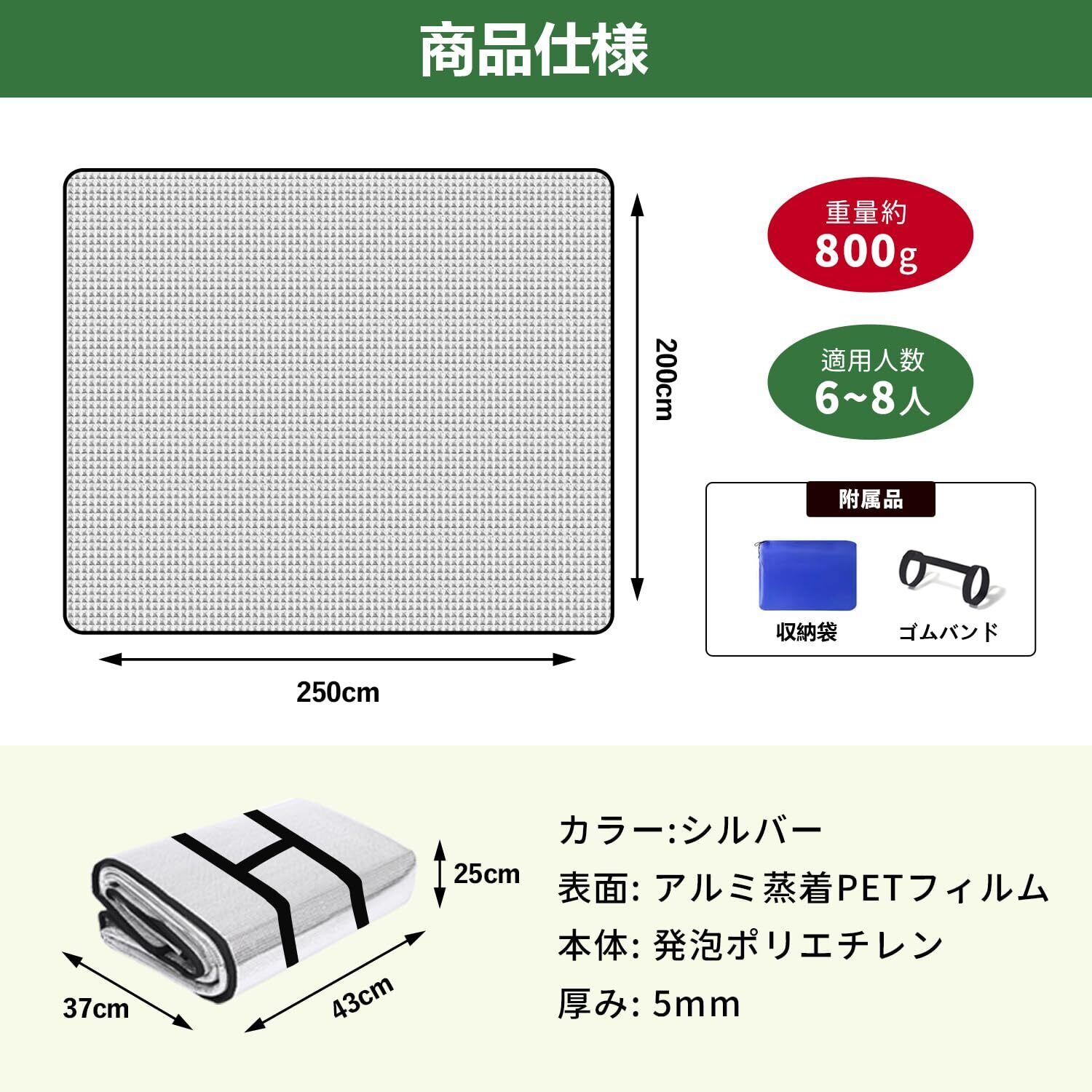レジャーシート アルミシート 銀マット 厚手 キャンプ用 アルミマット テントマット100cm/150cm/200cm/250cm×200cm (超軽量/断熱/保温) キャンプマット 防水 災害 ピクニック 花見 花火大会 運動会 遠足 海やプールなど(250cm×200cm)