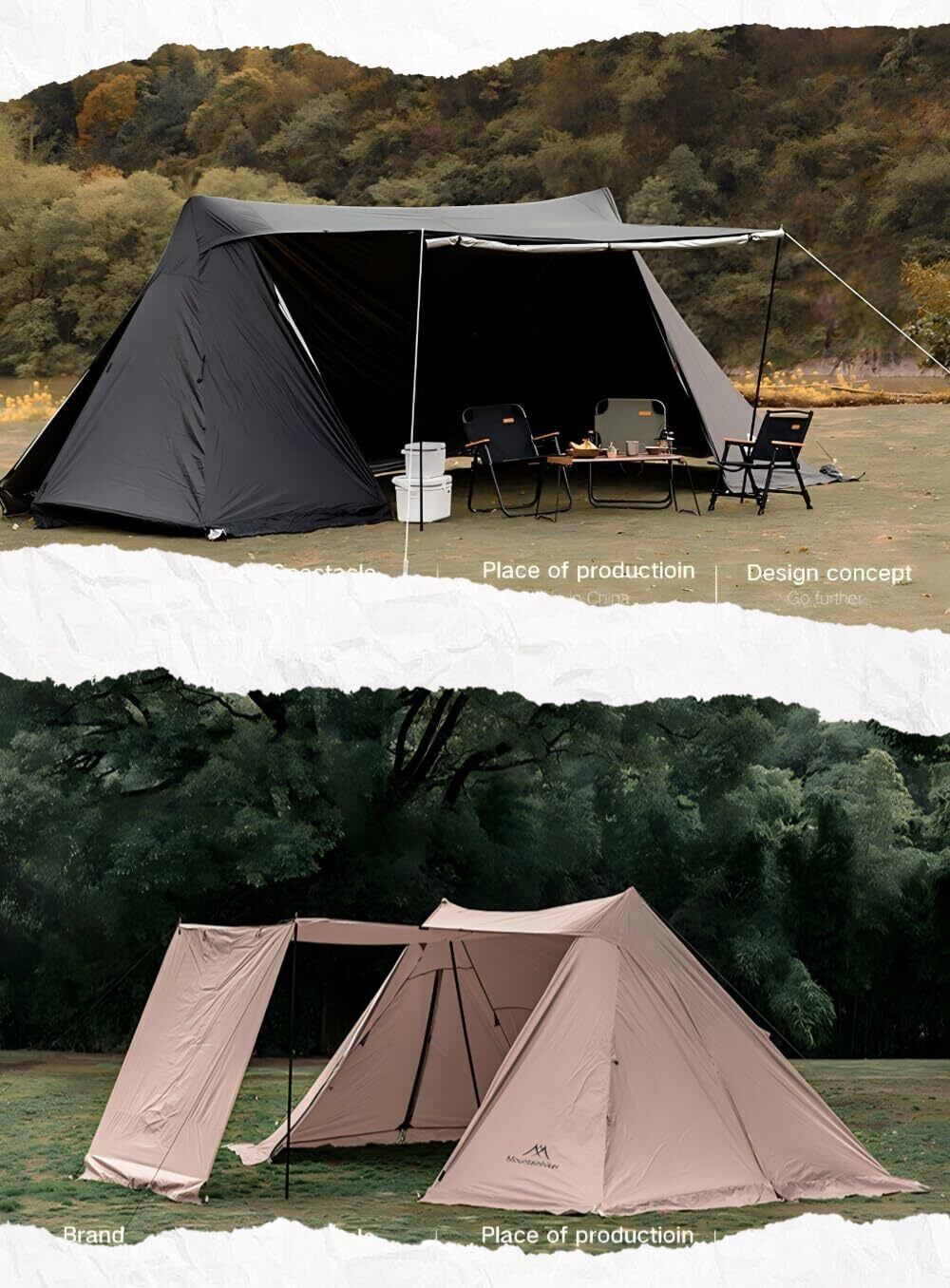 【オールシーズン対応テント】:標準的なテントのデザインとして、外側にスカートのデザインを追加し、冬の風や雪の侵入を防ぎ、快適に保ちます。テント内に煙突穴があり、テント内で焚き火をすることができます。ファミリーキャンプ、夏キャンプ、アウトドアキャンプシェルター、緊急防災、など季節に合わせて簡単に設営できるテントです。