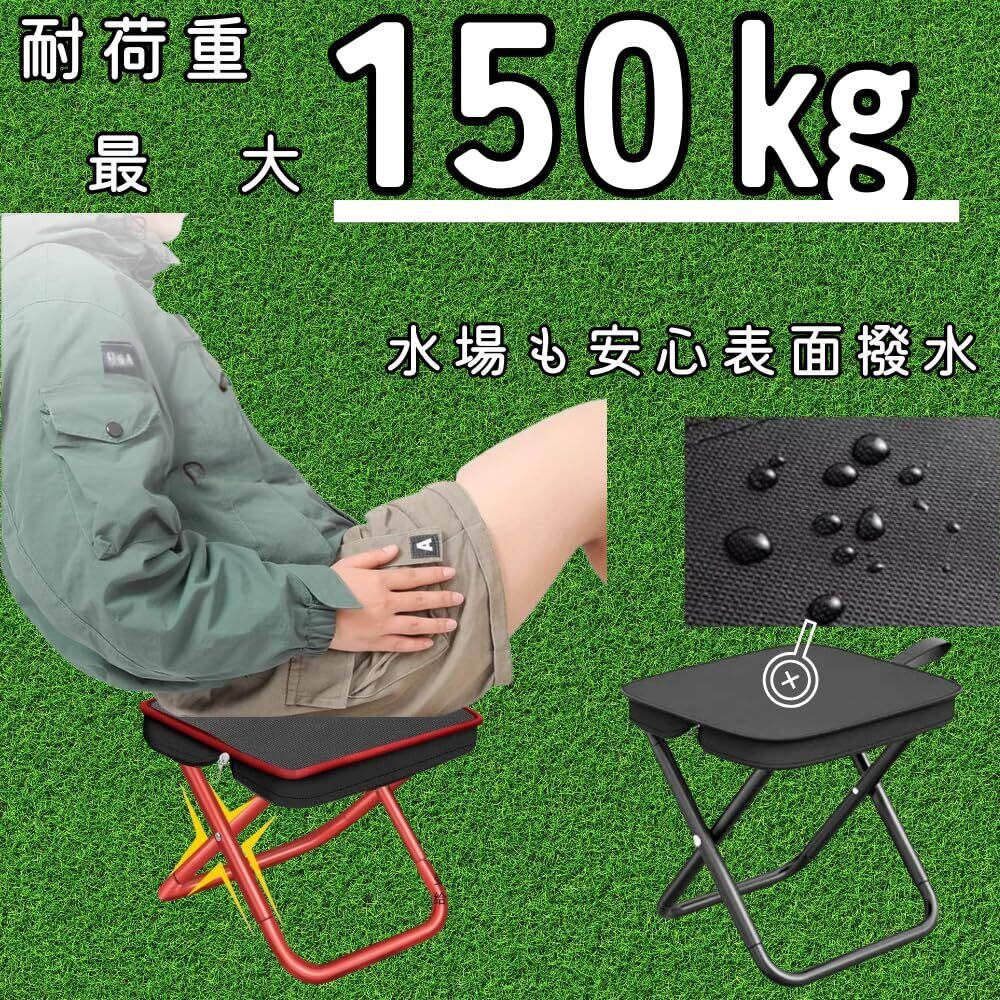 【小型だけど頑丈です】小型ですが耐荷重は最大150㎏あり、とっても頑丈となっています。耐荷重が150kgあるので、荷物を置いたり、子供を膝の上にのせたりも可能です。また、座面は丈夫な布生地で、シャツにも利用されるオックスフォード生地のさらっとした肌触りで、座りごごちが良く、撥水ですので、海水浴や川のそばでのバーベキュー等、水場でもご利用できます。