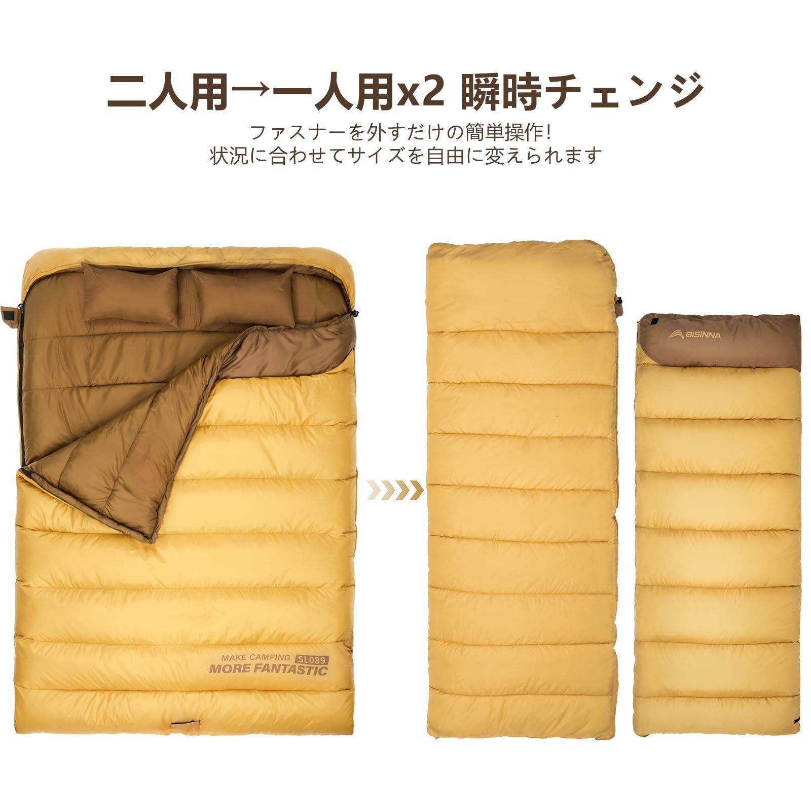 BISINNA キャンプ寝袋 二人用 コンパクト アウトドアシュラフ 封筒型