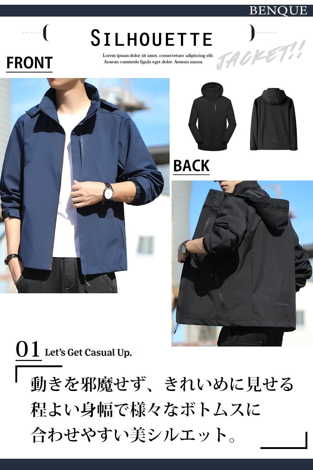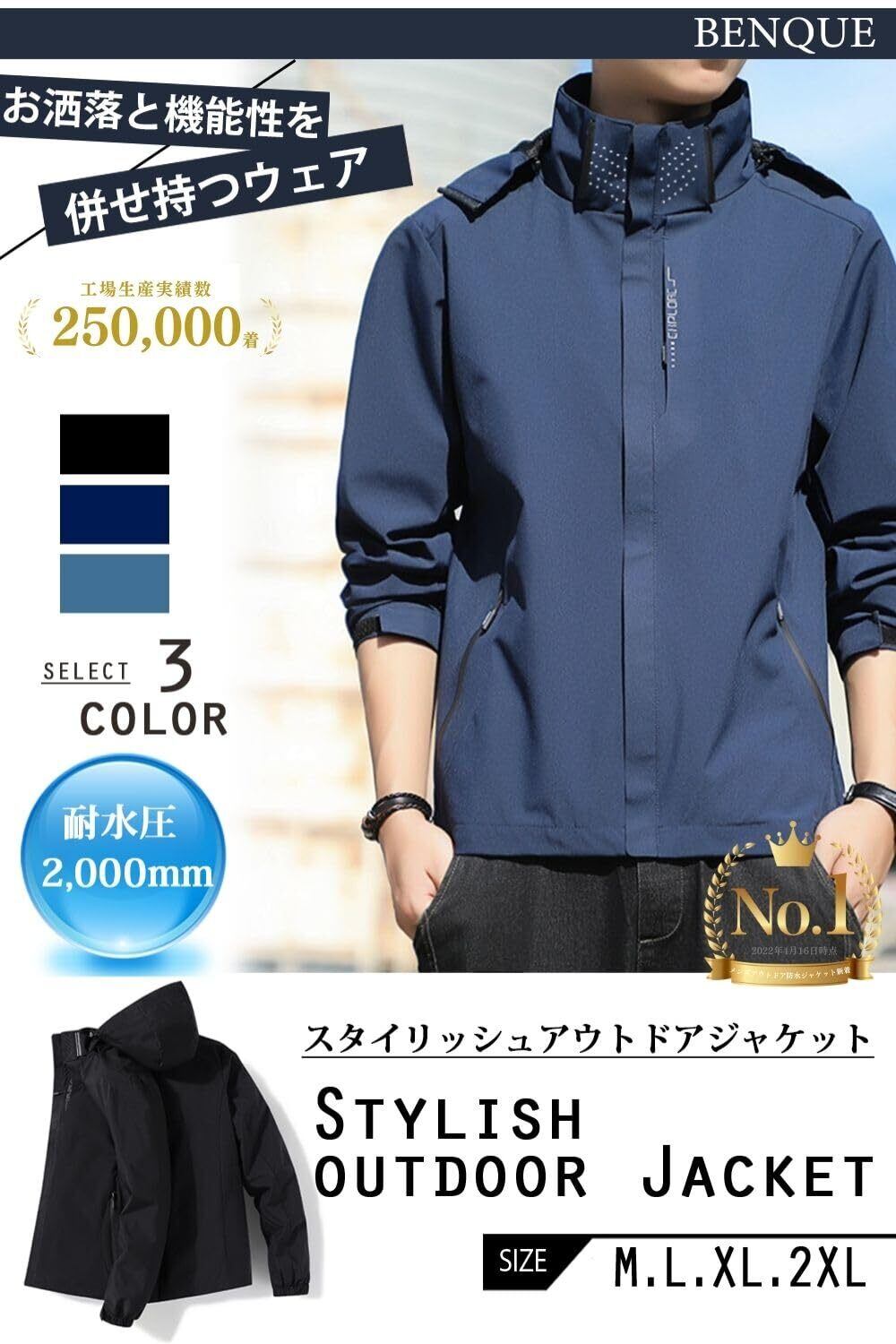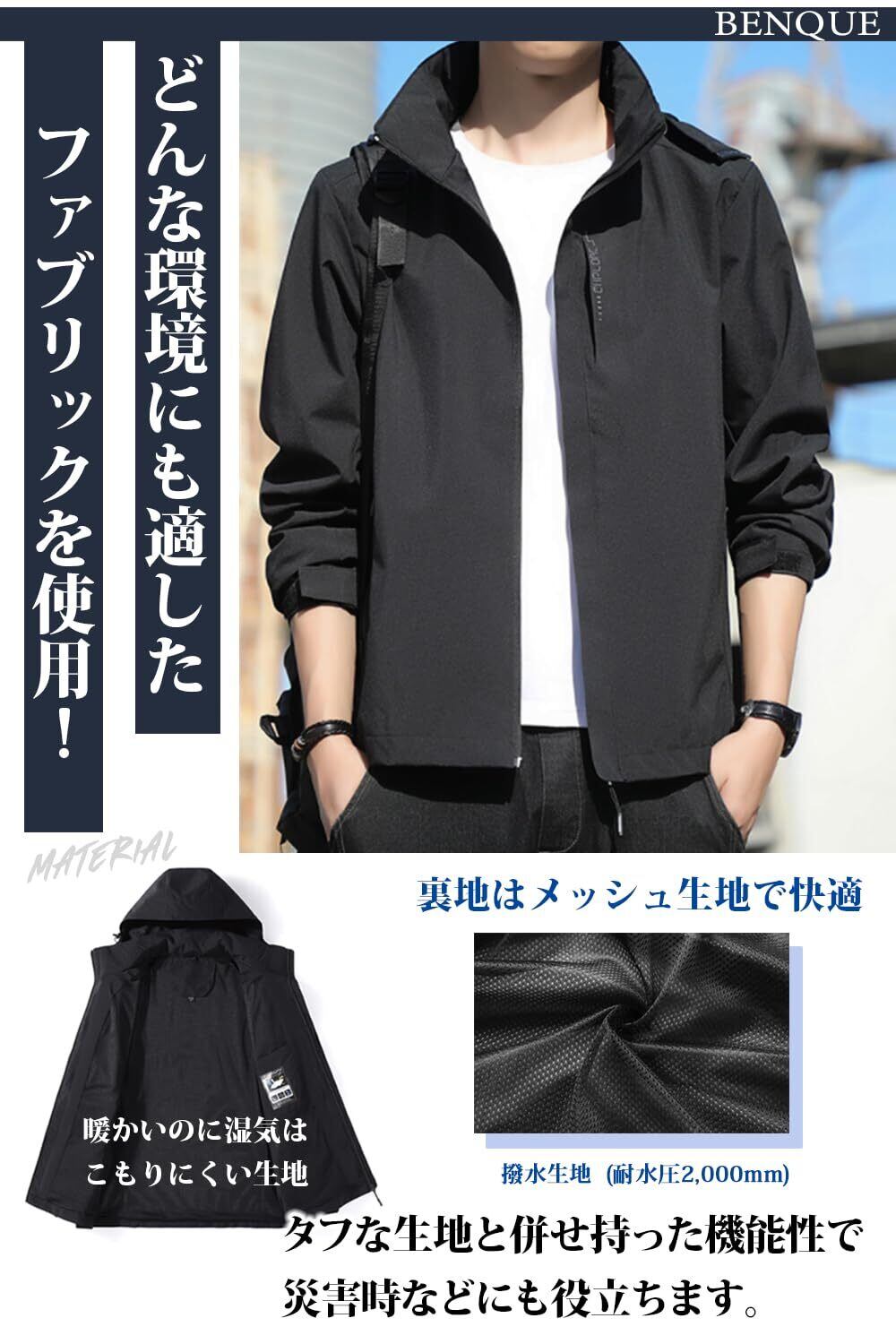 [ベンケ] 【軽くて、風を通さない】アウトドアジャケット メンズ マウンテンパーカー ウィンドブレーカー 登山 ウェア 通勤 通学 【防風x撥水】【耐水圧 2000mm】