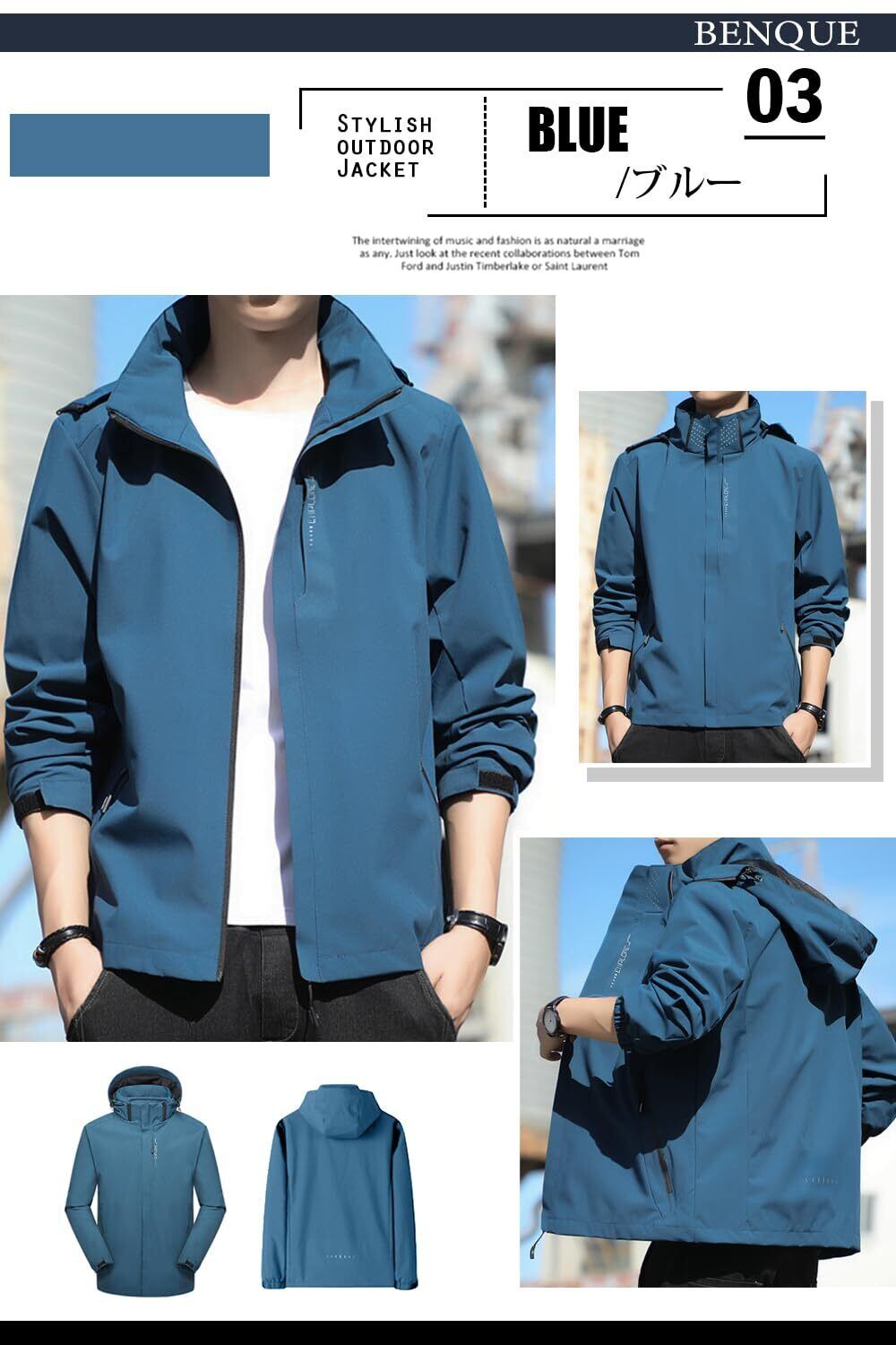 【撥水加工なのでアウトドアシーンでも大活躍】耐水圧2,000mmの撥水性にも優れた生地を使用しているので、水をしっかりとはじき、レインコート代わりにもお使い頂けます。ファスナーで簡単に取り外し可能なフード付きで 気分や状況に合わせて使い分け可能。首元までしっかり閉じることができるので、防風力も◎