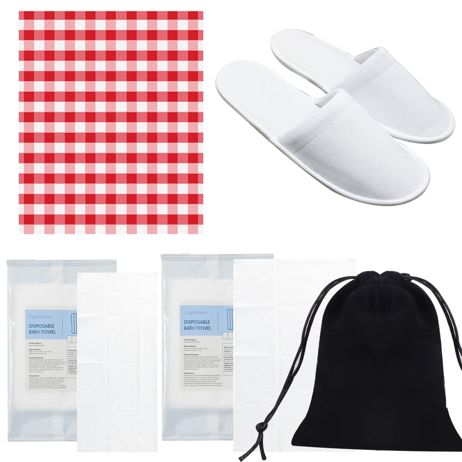 【旅行の必需品、安心して旅行】使い捨てセットにはタオル、バスタオル、スリッパ、収納袋、アウトドアマットが含まれており、旅行宿泊施設の衛生問題を解決し、身軽に旅行して安心して旅を楽しむことができます。