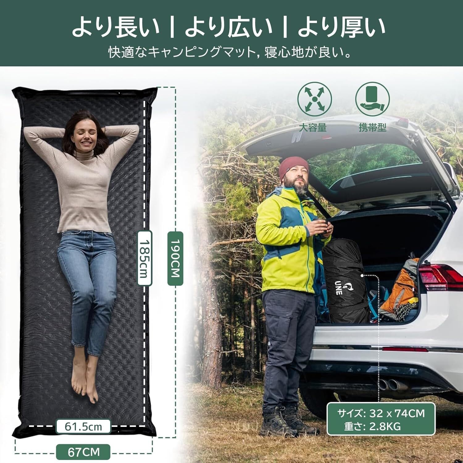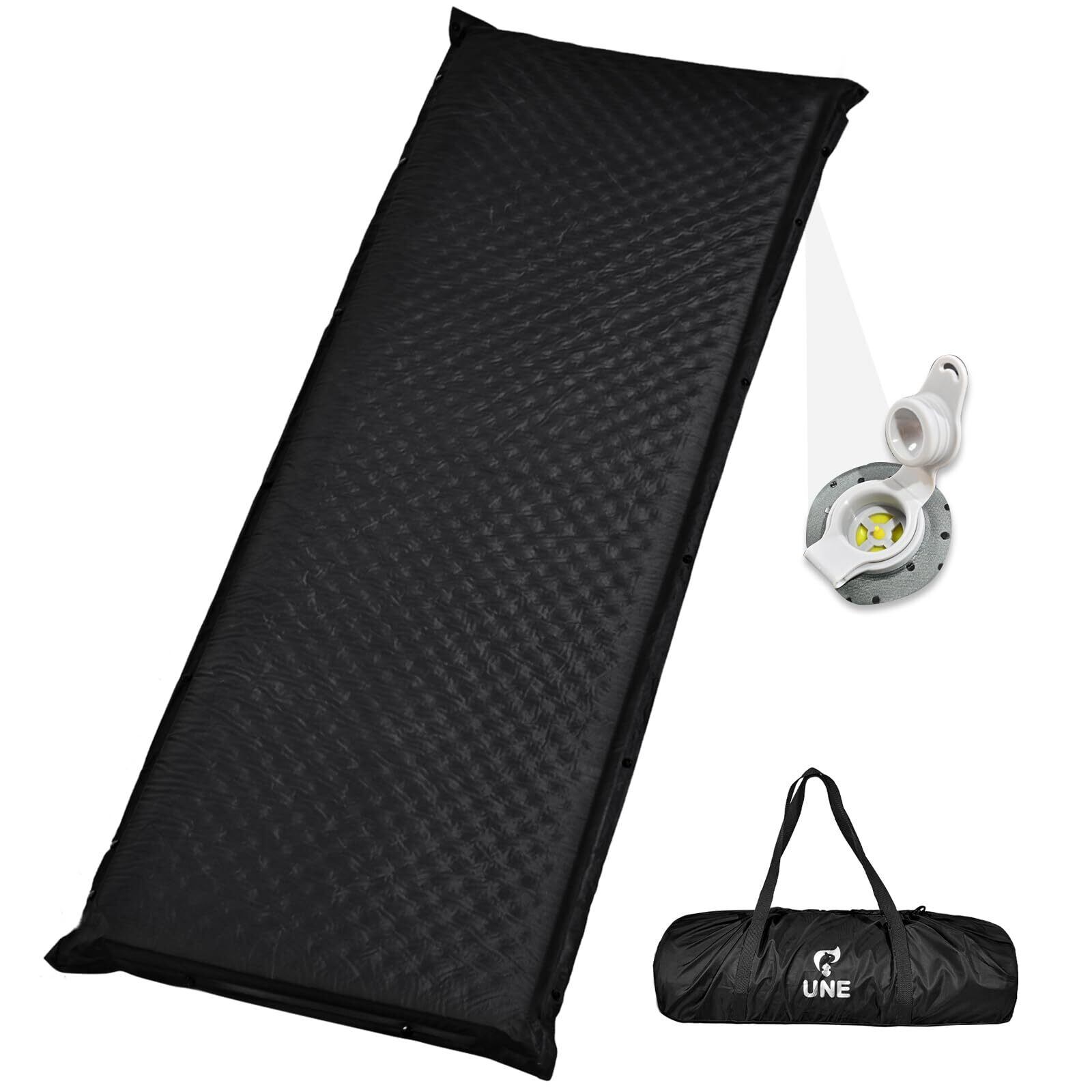 UNE キャンプ マット エアーマット【30秒自動膨張・超広幅67cm】8CM 厚手 R値 6.8 コンパクト 2WAY逆流防止弁 コット 車中泊 エアーベッド 防潮 持ち運び 折り畳み キャンパー 無限連結可能 キャンプ用品 寝具 来客用 防災