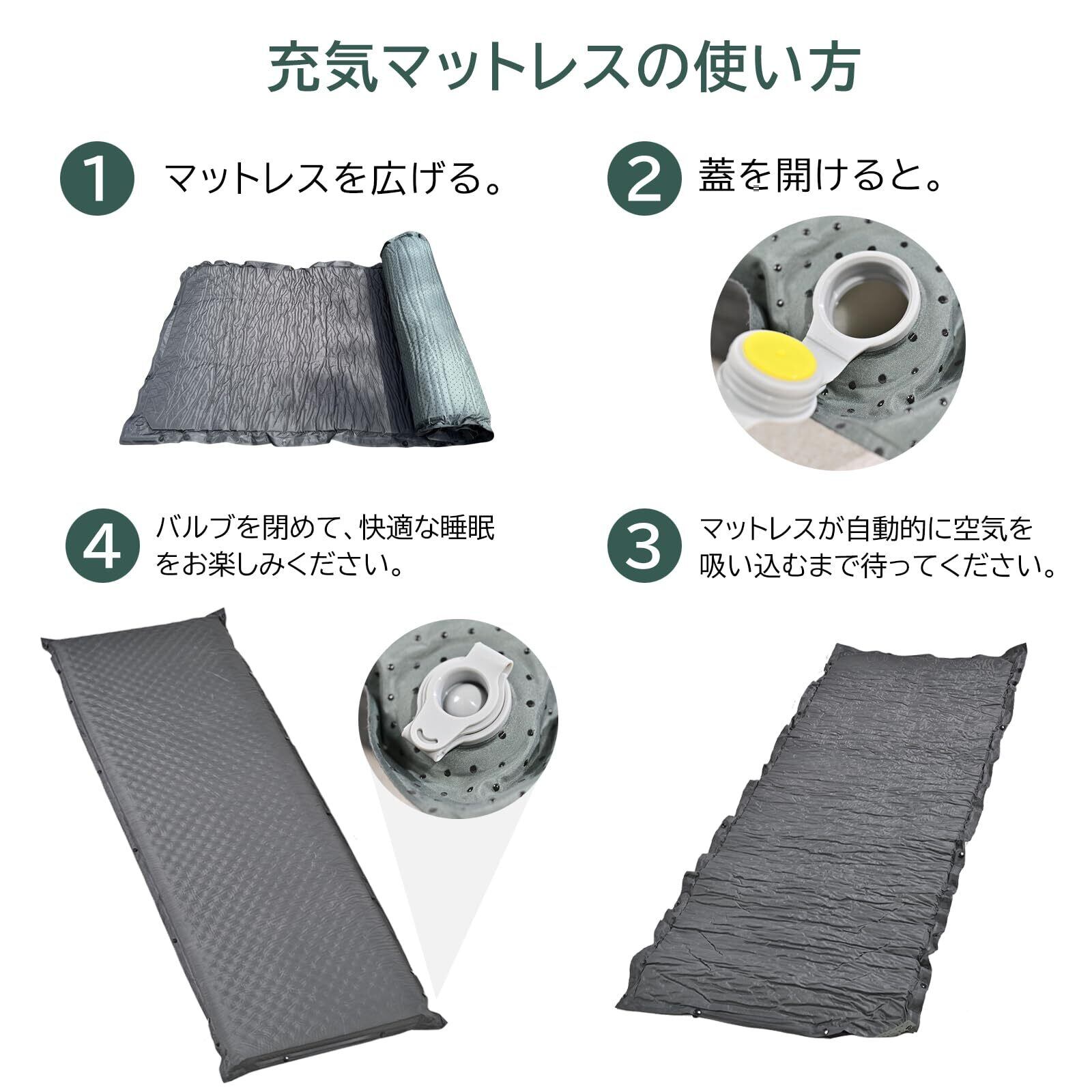 【初回使用のご注意】1、初期状態は真空圧縮された状態のため、中のウレタンが通常時に比べて膨らみが悪くになります。また、気温変化によって膨らみも少し悪くなる可能性があります。2、初期対応として、一度入る分まで空気を入れてバルブを閉めて巻きます。バルブ方から曲げていない方へと空気が集まリとウレタン全体に空気が馴染みます。その後バルブを開けるとウレタンが膨張した分の空気がさらに入ります。(以上の操作を何回に繰り返します。)充分膨張後に天日干しもしくは気温が高い場所で一定時間放置して膨らみやすくなります。3、自動膨張では約80%まで膨らみ、さらに膨らみが欲しいと感じる場合は直接空気を吹き込むか、エアポンプなどで空気を送り込んでください。