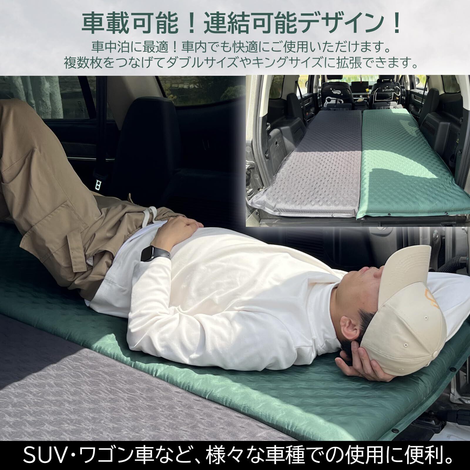 【超広幅67cm、無限連結可能で車中泊でも多シーンでも快適】車中泊マットに対応するサイズ感。長190CMx幅67CMは三菱 デリカD:5、トヨタ RAV4、スズキ ジムニー、ホンダ ステップワゴン、ホンダ N-BOX、スズキ ジムニーなどのSUV、ミニバン、軽自動車を多数対応です。両サイドに連結用のボタンがあり複数のエアーマット繋げられます。それで、横幅を広げられ、キャンプ・花見・ツーリング・釣りなどのテントマット・アウトドアマットとしてはもちろん、急な来客時や防災グッズもオススメです。春・夏・秋・冬のオールシーズン使えるエアーマットです。