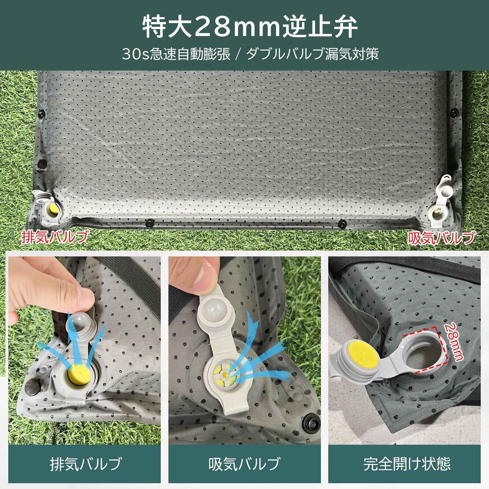 【30秒自動膨張・特大28mm逆止弁×2、簡単に収納可能】 UNEエアーマットは独自の革新バルブ構造を採用し、従来のデザインを覆します。バルブを反転させ、吸気と排気の空気の流れを一方向にすることで、充気と排気がスムーズに行えます。28mmの大口径の逆止弁が2つ搭載され、充気・排気速度は他のキャンプマットの4倍の速さを実現し、設営も撤収も効率的です。女性でも簡単に収納できるので、誰でも手軽に使えます。