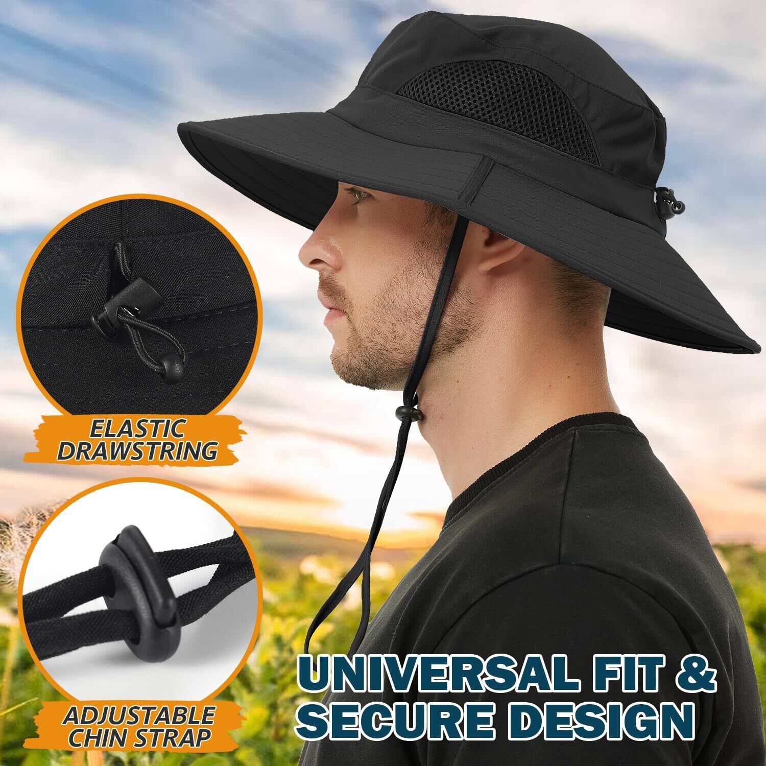 【可調整&男女兼用】後部の伸縮性ひも設計により、頭のサイズに合わせて54-60cmに調整可能です。可調整な顎紐で帽子が風で吹き飛ばされないようにします。男性と女性に適しています 。