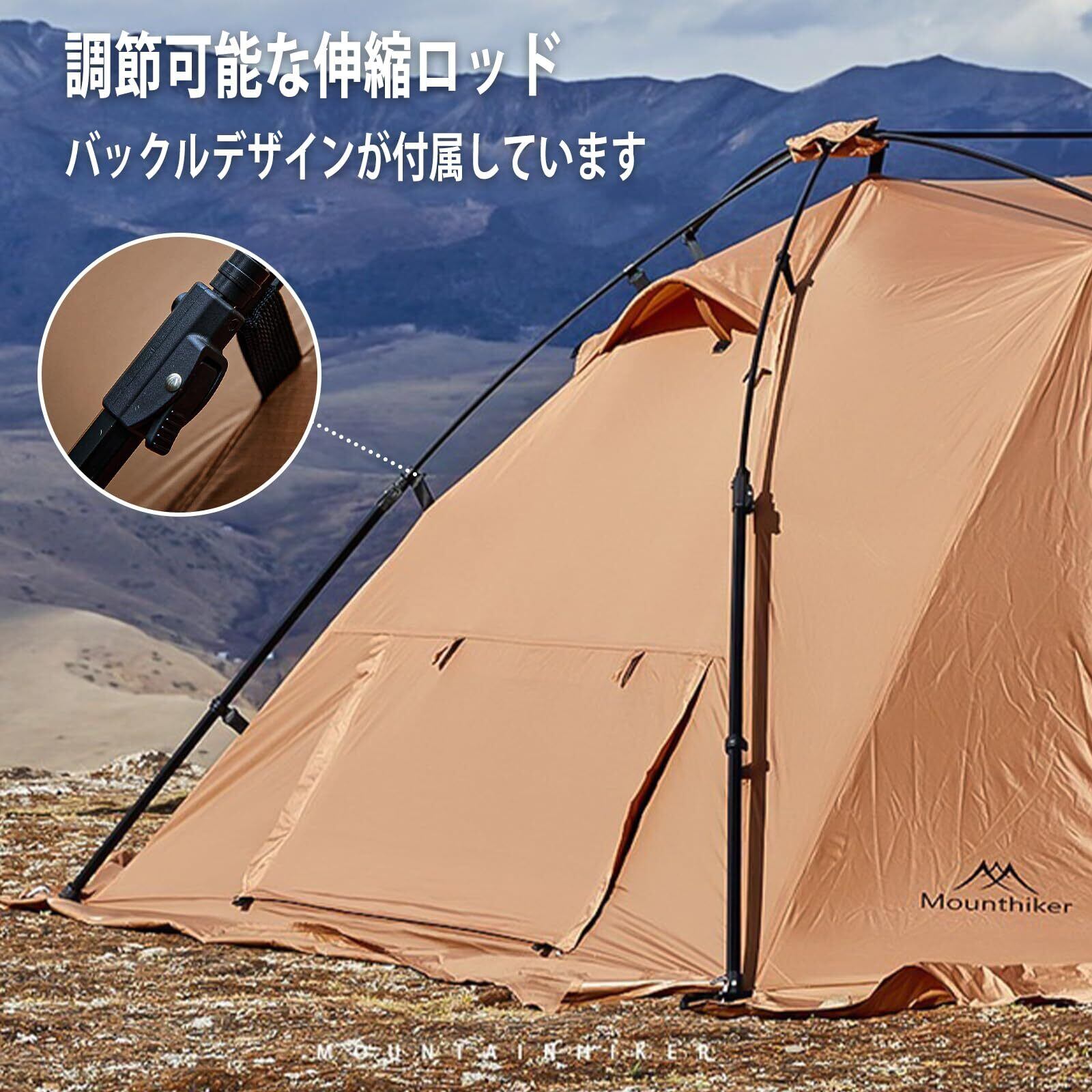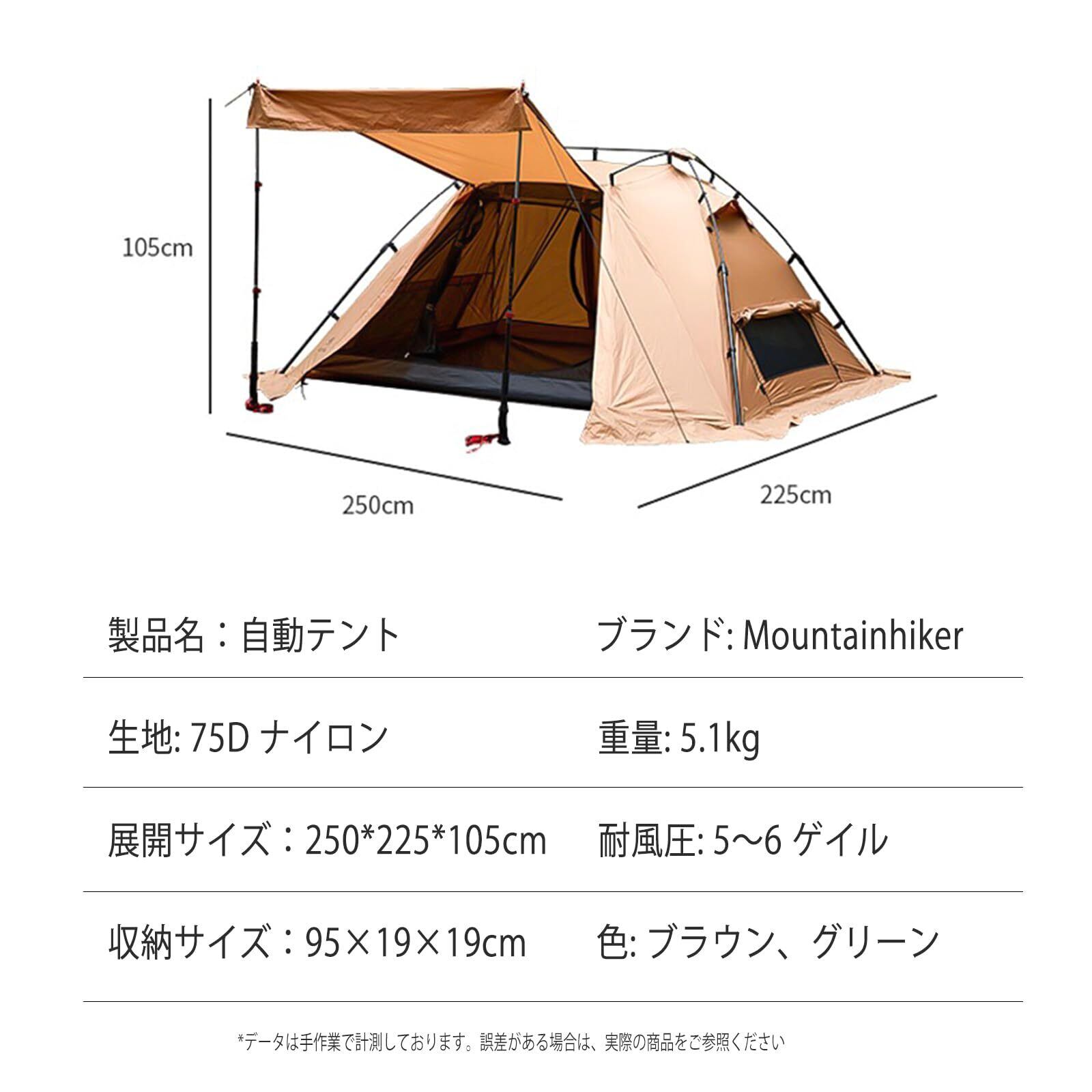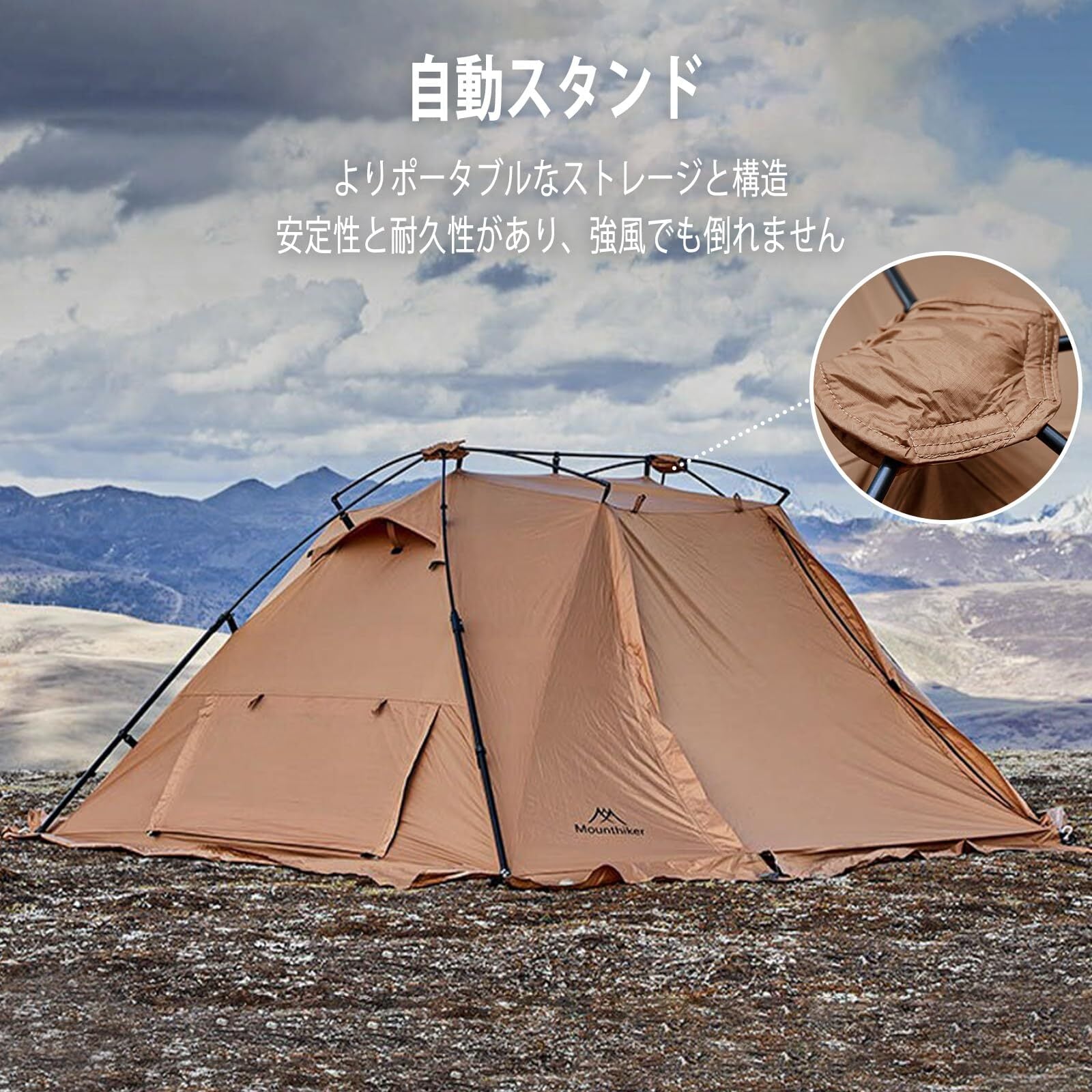 Mountainhiker ワンタッチテント 1-2人用 自動フレーム 簡単設営 軽量コンパクト 二重層テント 3000mm耐水圧 通気 防風 2ドア メッシュインナー 防虫 防災 キャンプ アウトドア ソロ