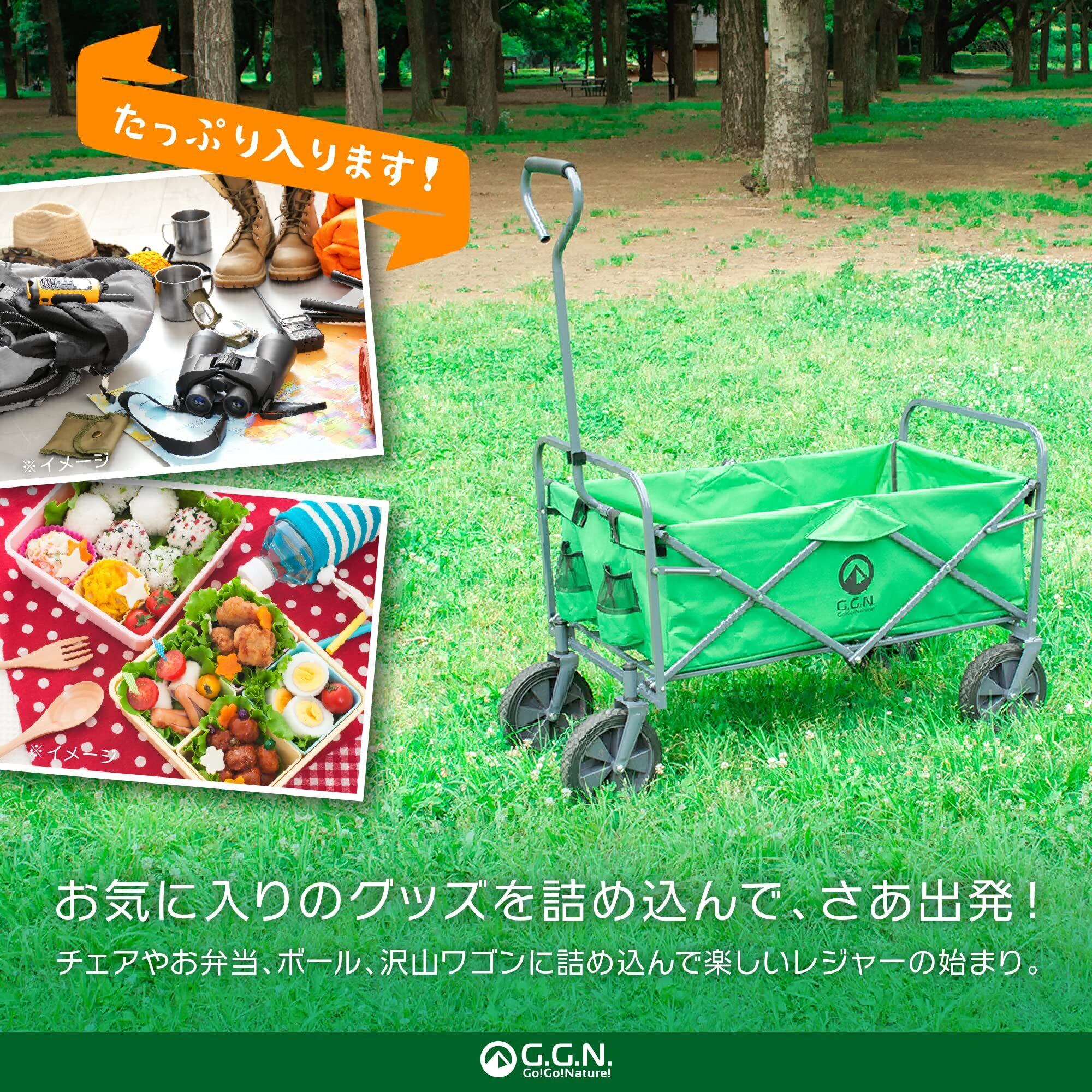 【在庫セール】【限定】ジージーエヌ(G.G.N.) アウトドアワゴン キャリーワゴン キャリーカート 荷台容量100L 折りたたみ可能 レジャー キャンプ グリーン 大型 タイヤ GN02CM001 | paghag