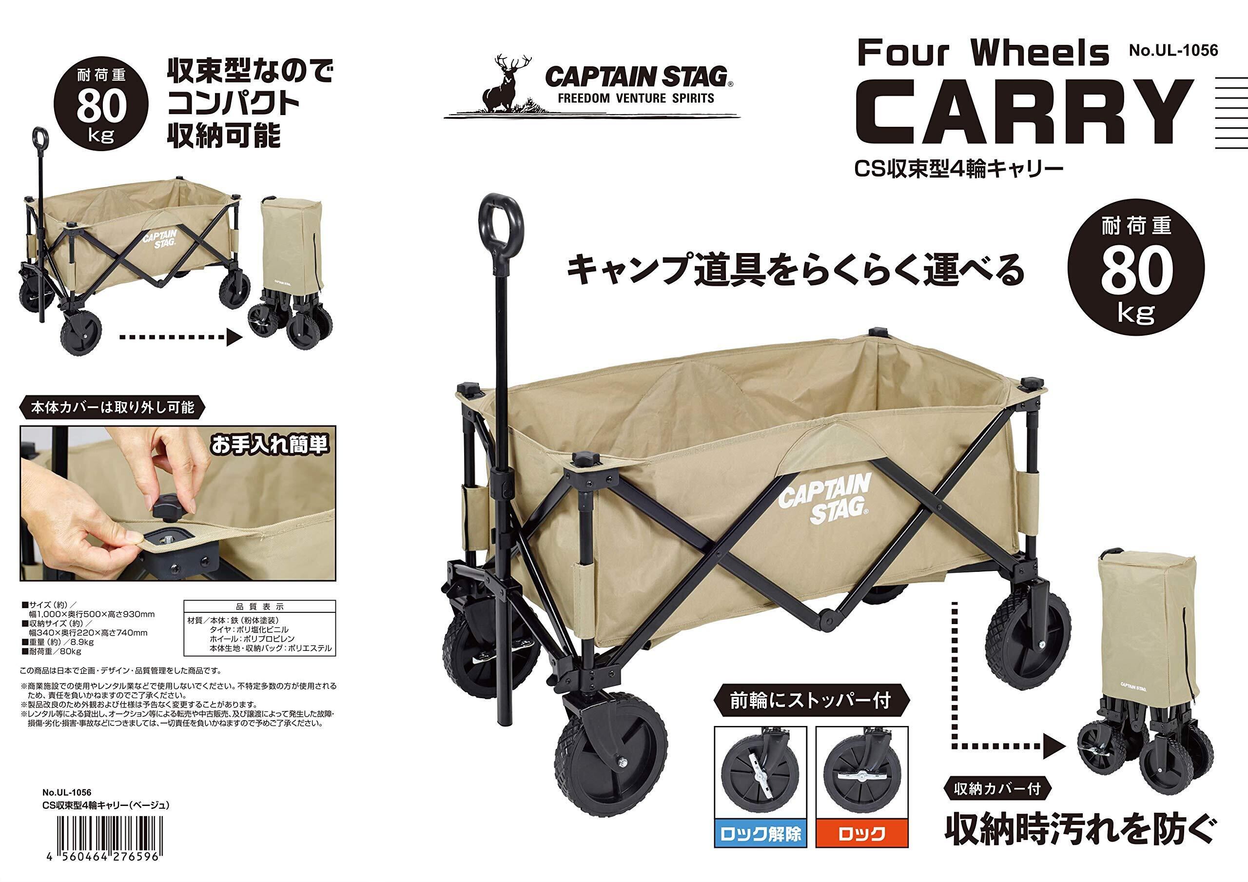 キャプテンスタッグ(CAPTAIN STAG) アウトドアワゴン CS 収束型 4輪キャリー 収納バッグ付き 前輪ストッパー付き 【UL-1055/UL-1056/UL-1031/UL-1035】