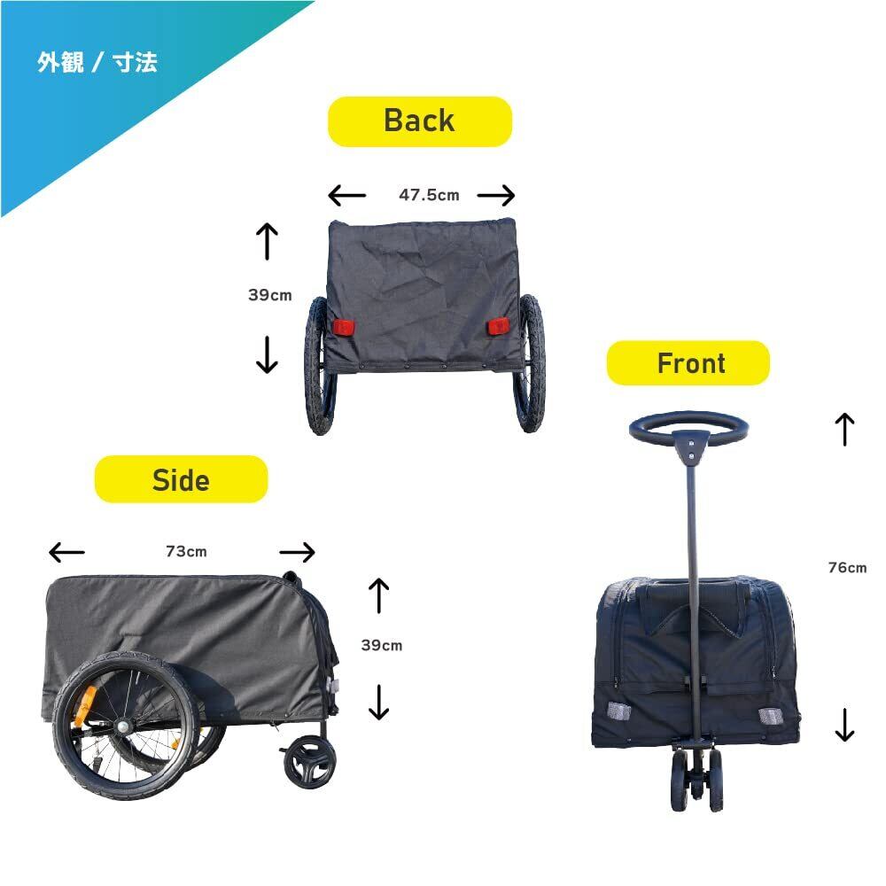 カバー・換気窓:ポリエステルカバー・ペット用換気窓付き タイヤ:16インチチューブタイヤ カラー:ブラック・グレー