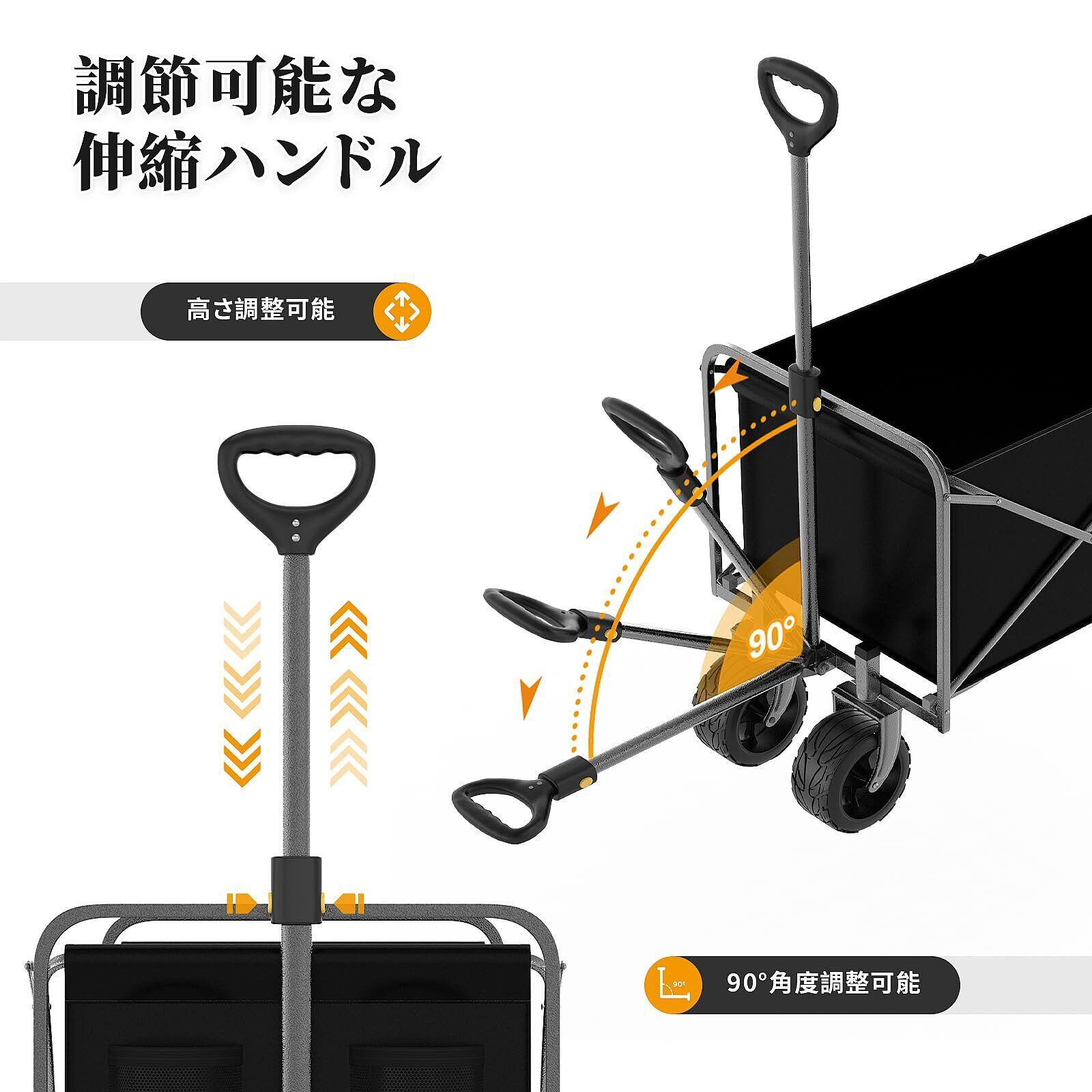 【調整可能ハンドル】:折り畳み可能なカートのハンドルは長さを延長し、角度を調整することができます。ハンドルはロックされているので、車を押している間に暴走したり外れたりする心配はありません。