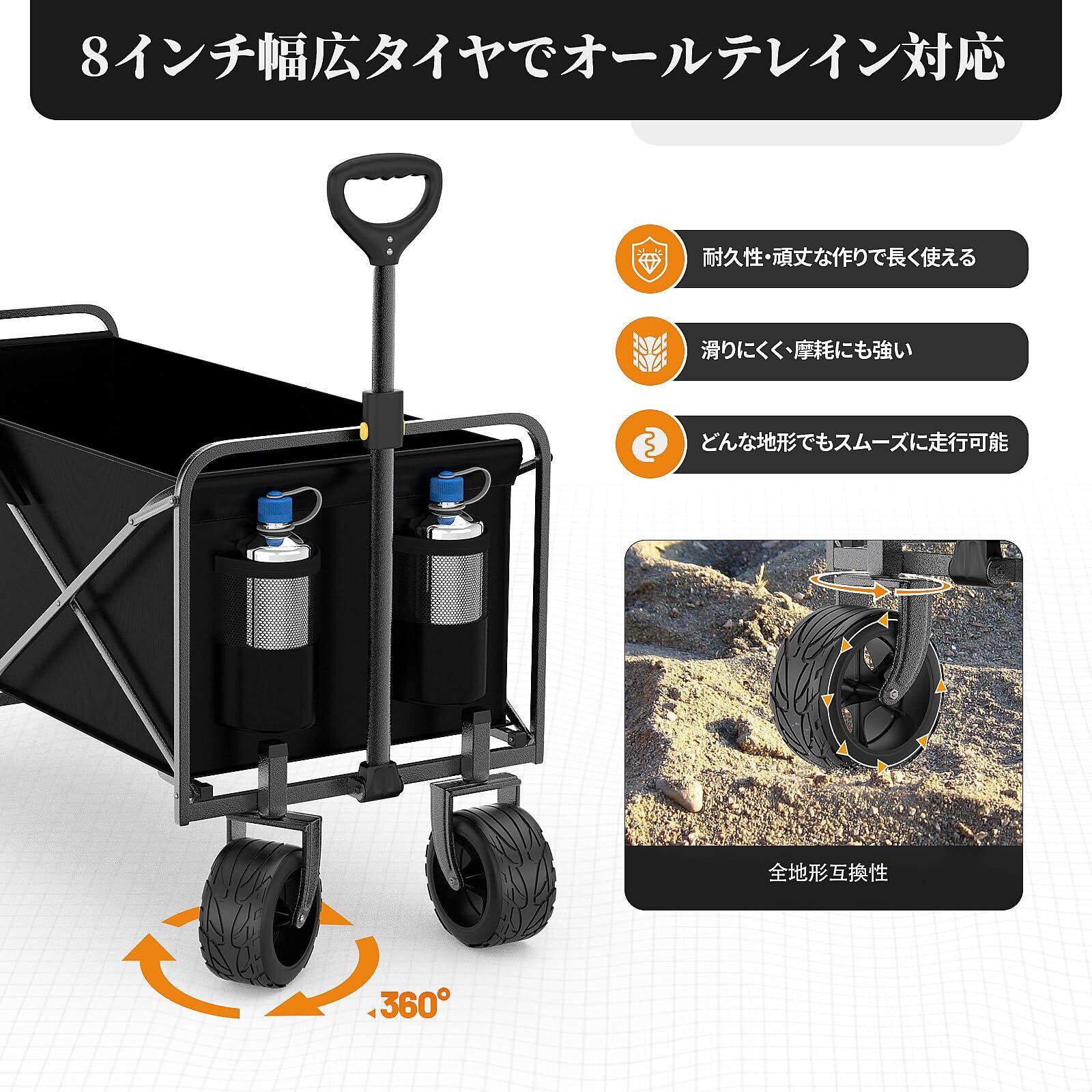 MAVGV 折りたたみ式ワゴン - ヘビーデューティ 220lbs(約100kg)耐荷重、全地形対応ビーチホイール&ドリンクホルダー付き ガーデン/キャンプ/ビーチ用(ブラック)